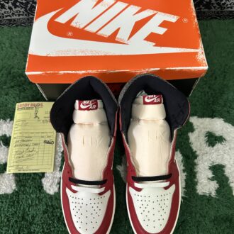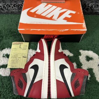 The Air Jordan 1 High OG Chicago Lost and Found revives the classic design that began it all. Featuring the original 1985 high-top silhouette, the leather upper showcases a white base with a black Swoosh and scarlet overlays on the forefoot and heel. Air Jordan 1 High OG Chicago Lost and Found has cracked black leather adorns the padded collar, while the white rubber midsole has a vintage pre-yellowed finish. The retro 80s vibe continues with unique packaging, including a distressed box covered in sale stickers and a mismatched replacement lid.