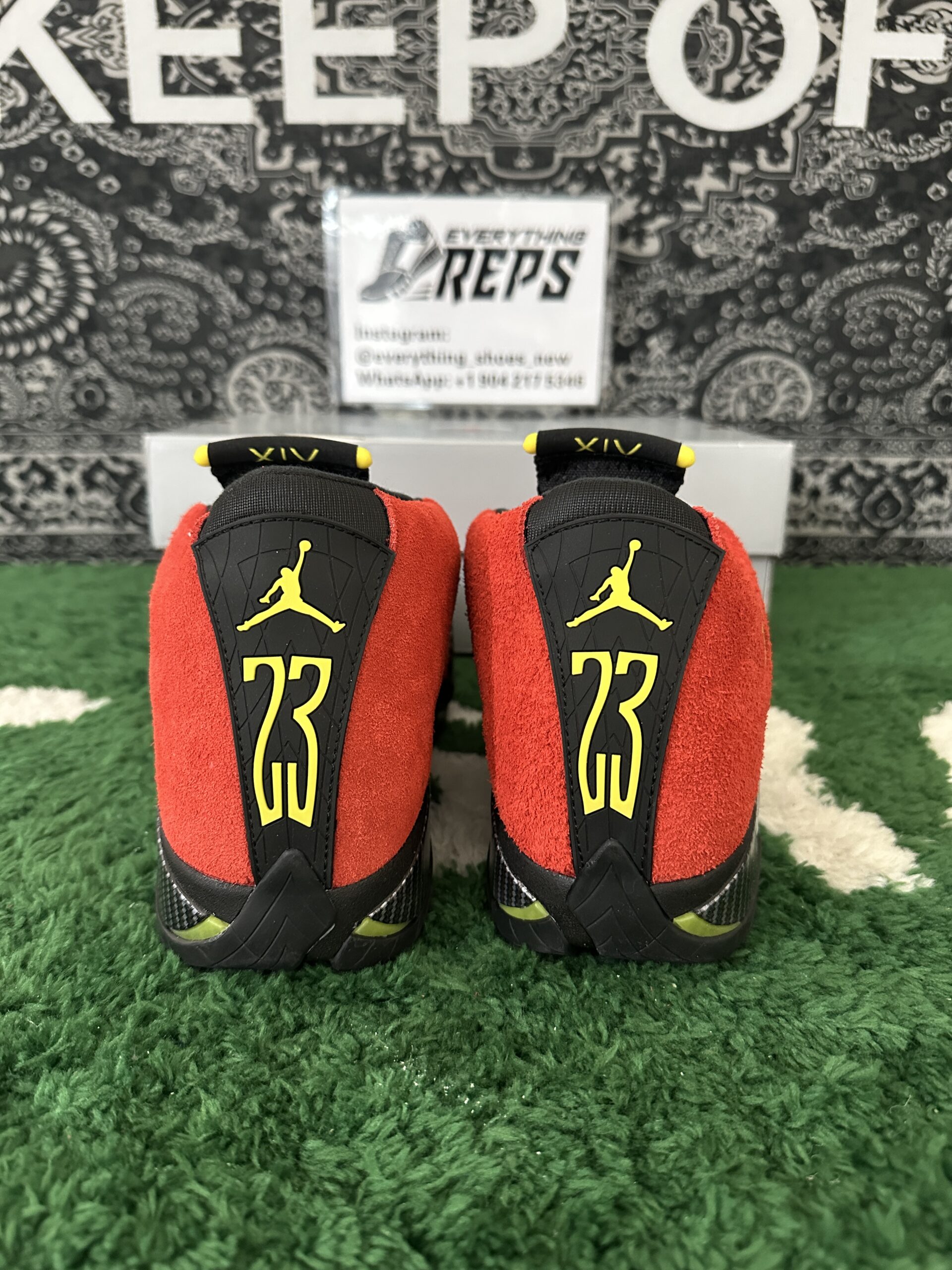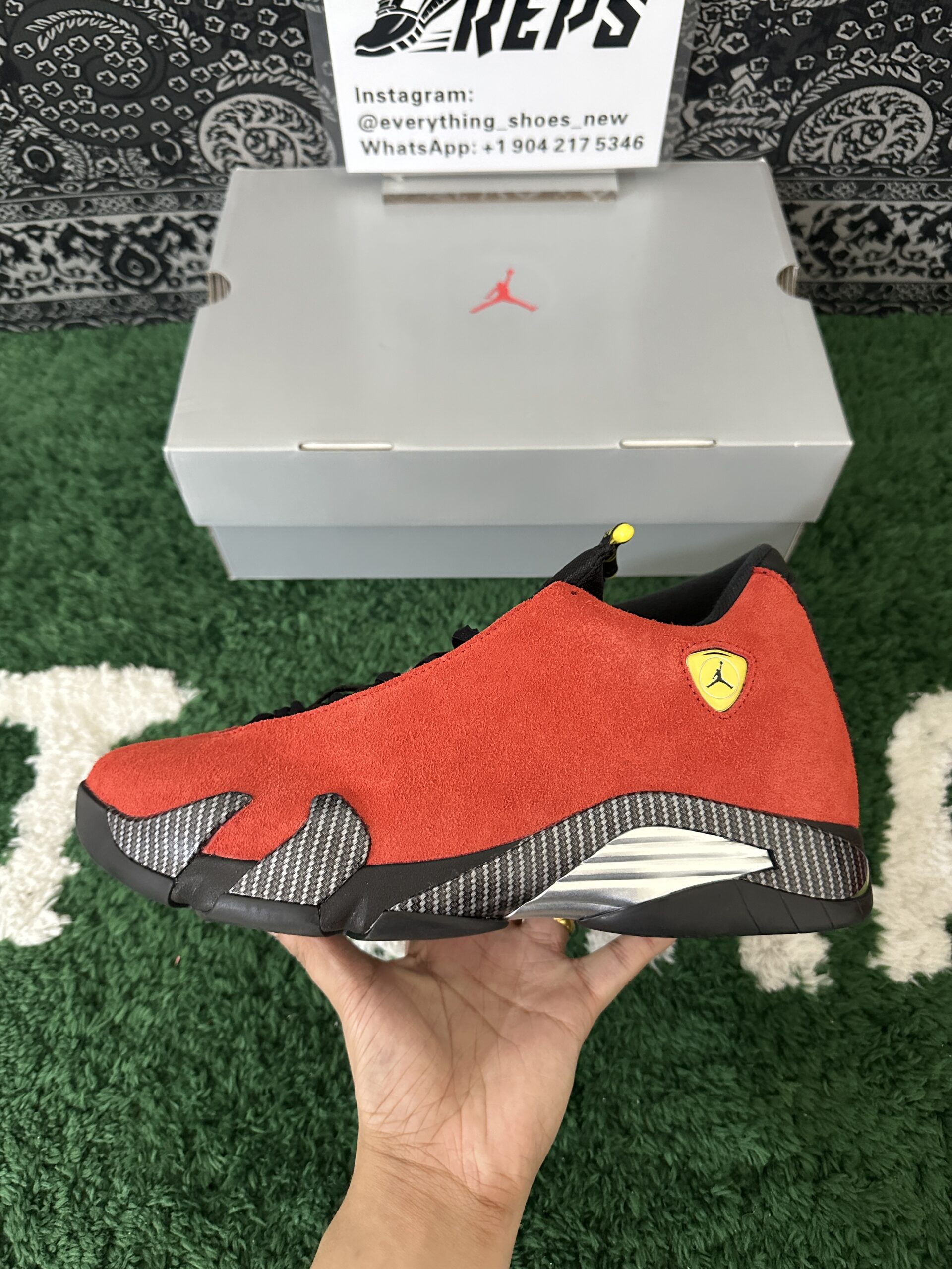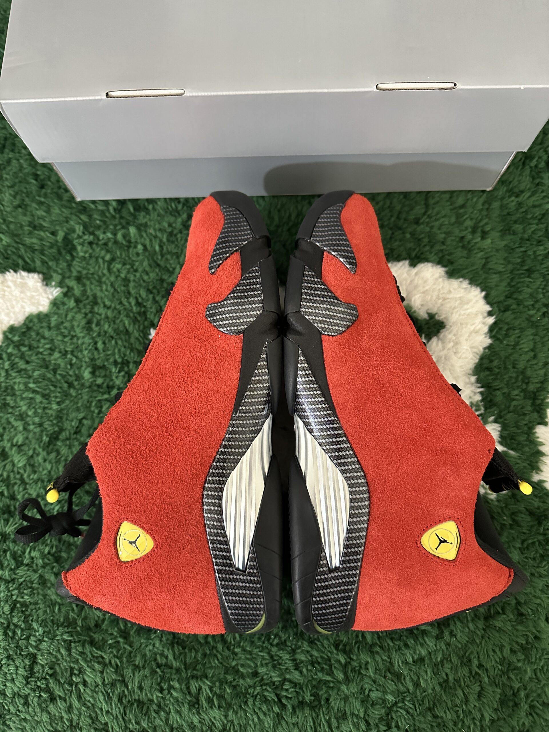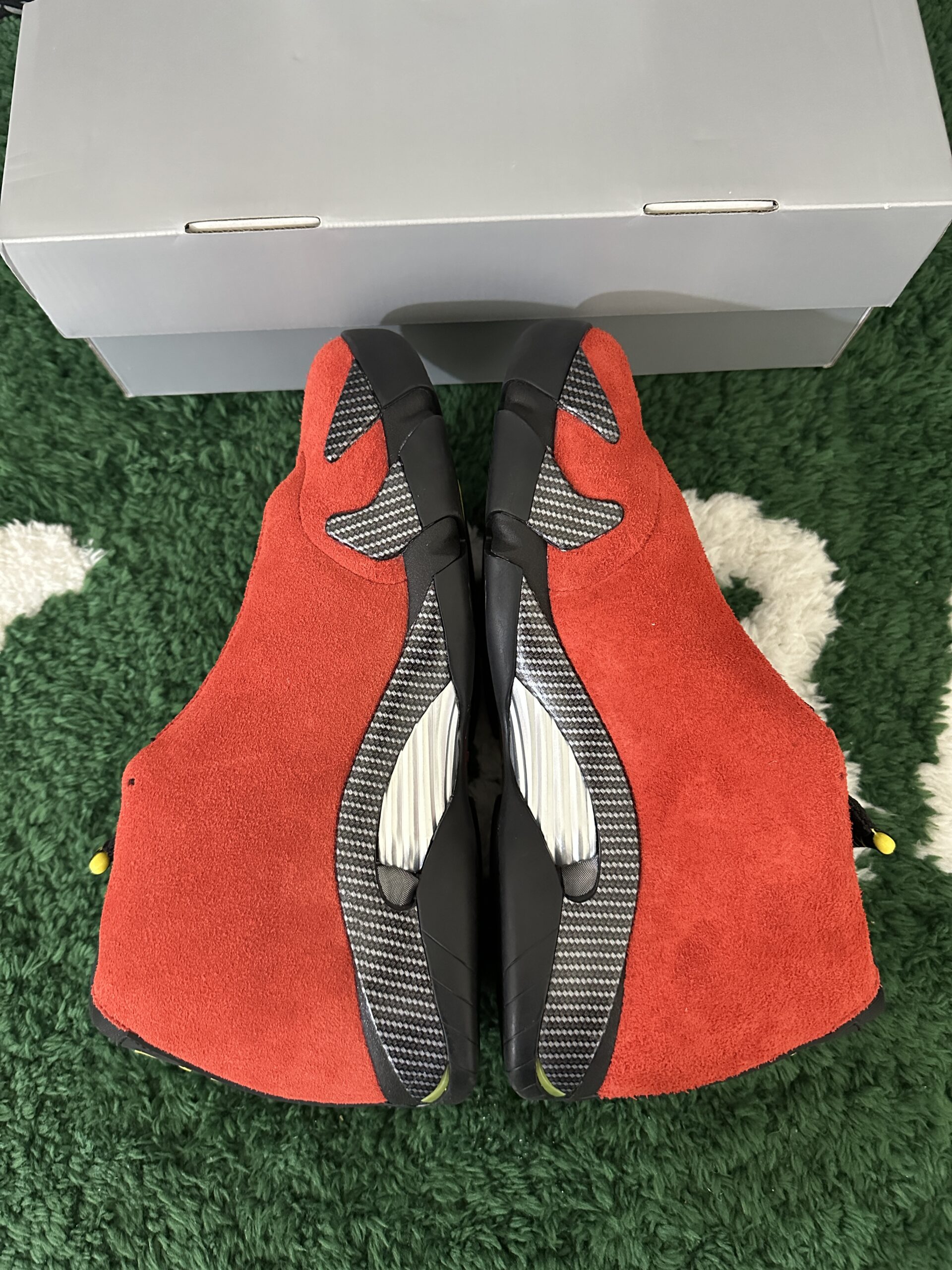 Unveil the iconic style with our Replica UA Air Jordan 14 “Ferrari”. This limited-edition sneaker captures the essence of speed and luxury, inspired by the sleek design of a Ferrari. Featuring a vibrant red upper with black and yellow accents, these shoes are crafted to perfection, offering both comfort and a bold aesthetic. The unique Jumpman logo and Ferrari-inspired detailing make this pair a must-have for collectors and sneaker enthusiasts alike. Elevate your sneaker game with this unparalleled blend of performance and style.