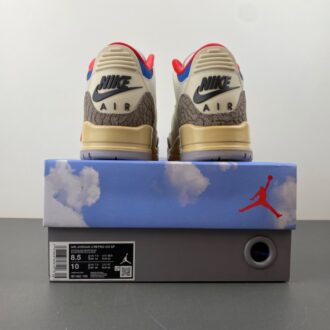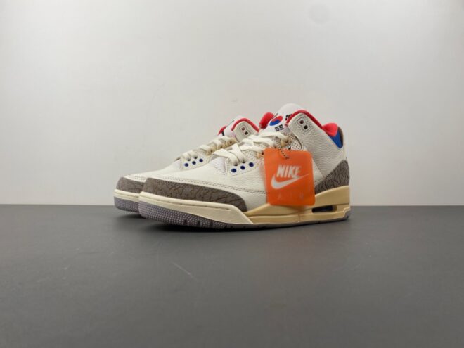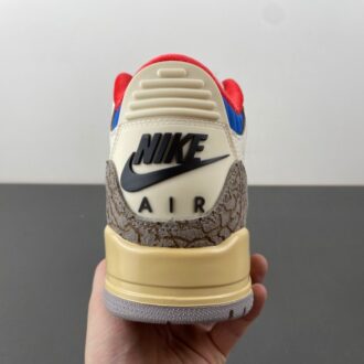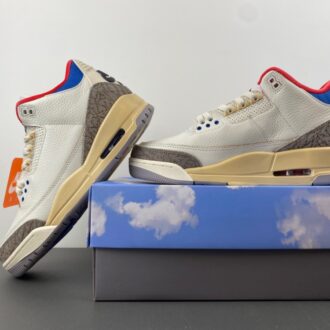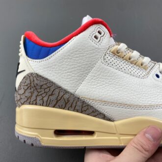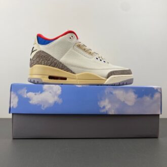 This iteration of the Air Jordan 3 commemorates the 1988 Olympics in Seoul. Taking inspiration from the South Korean flag, the shoe features black, red, and blue accents on the inner lining and collar. Air Jordan 3 Retro Seoul has white upper, constructed from tumbled leather, includes the Jordan 3’s signature elephant print panels. Korean characters appear on the inside of each tongue: ‘서울’ (Seoul) on one side; the 1988 games motto, ‘화합과 전진’ (Harmony and Progress) on the other.