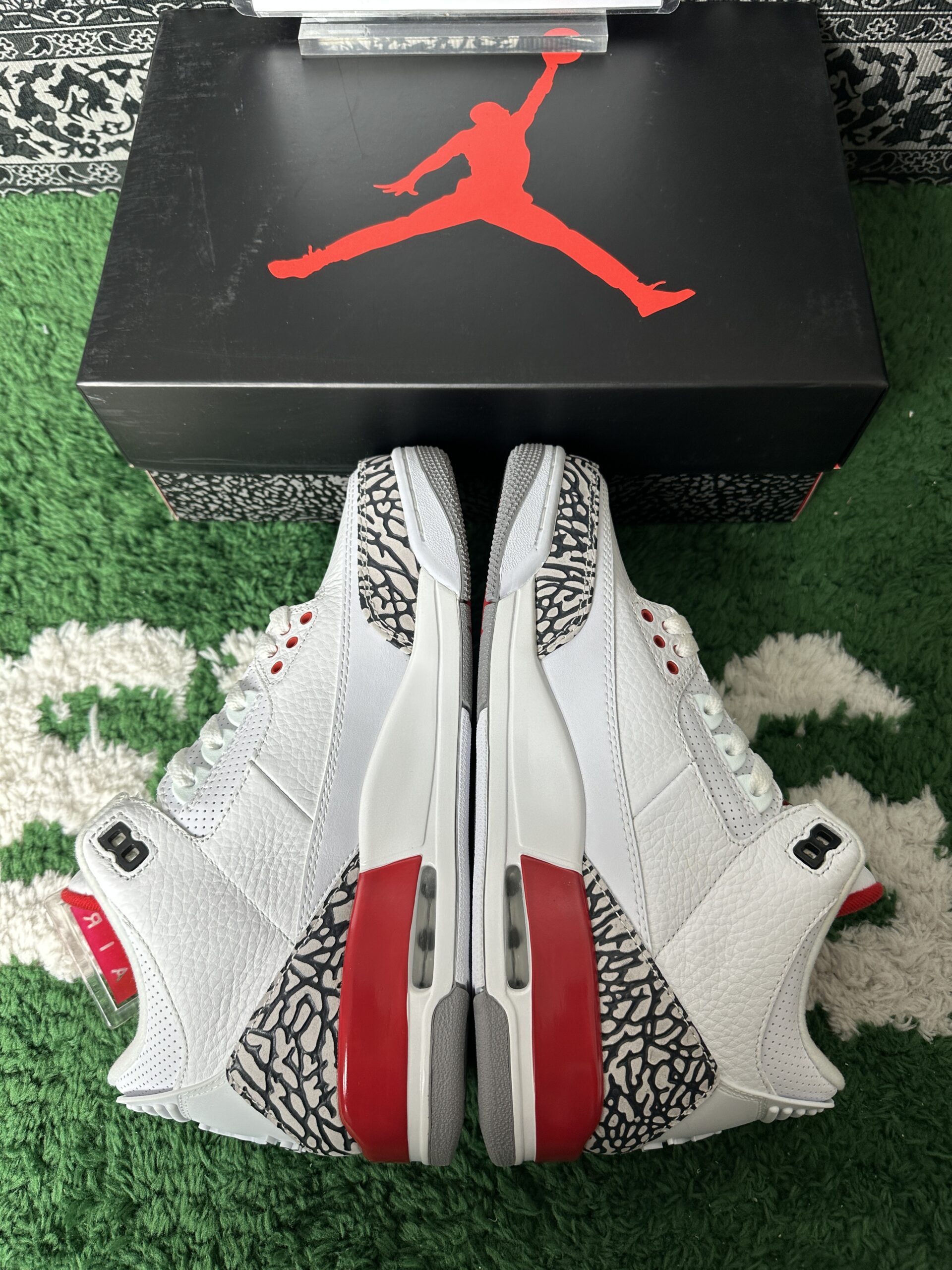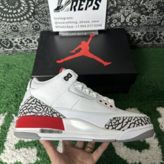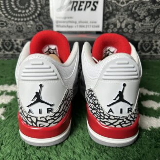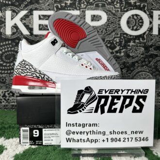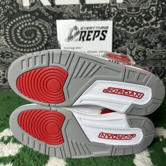 This timeless sneaker boasts a premium white leather upper, accented by signature cement grey and elephant print overlays that define the Air Jordan 3 lineage. Bold Fire Red and black details provide striking contrast, while the iconic Jumpman logo graces the heel, tying together a design that honors MJ’s enduring legacy both on and off the court.