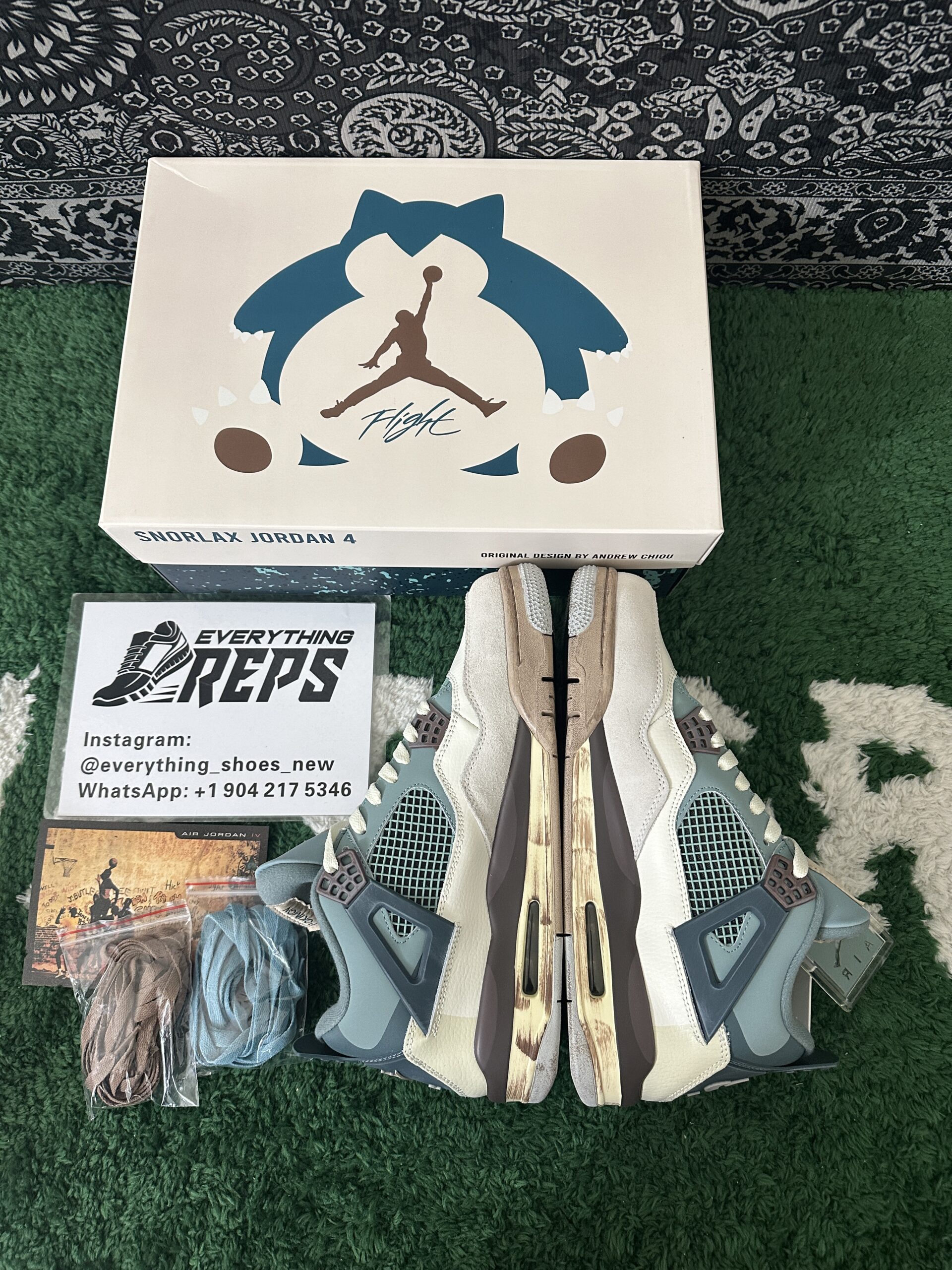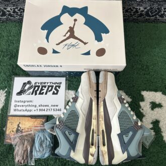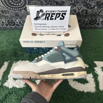 Following his Maijin Buu and Frieza Nike Dunk Low customs, sneaker customizer Andrew Chiou has crafted a Snorlax-inspired Air Jordan 4. This unique design dresses the iconic silhouette in the colors of the beloved Normal-type Pokémon.