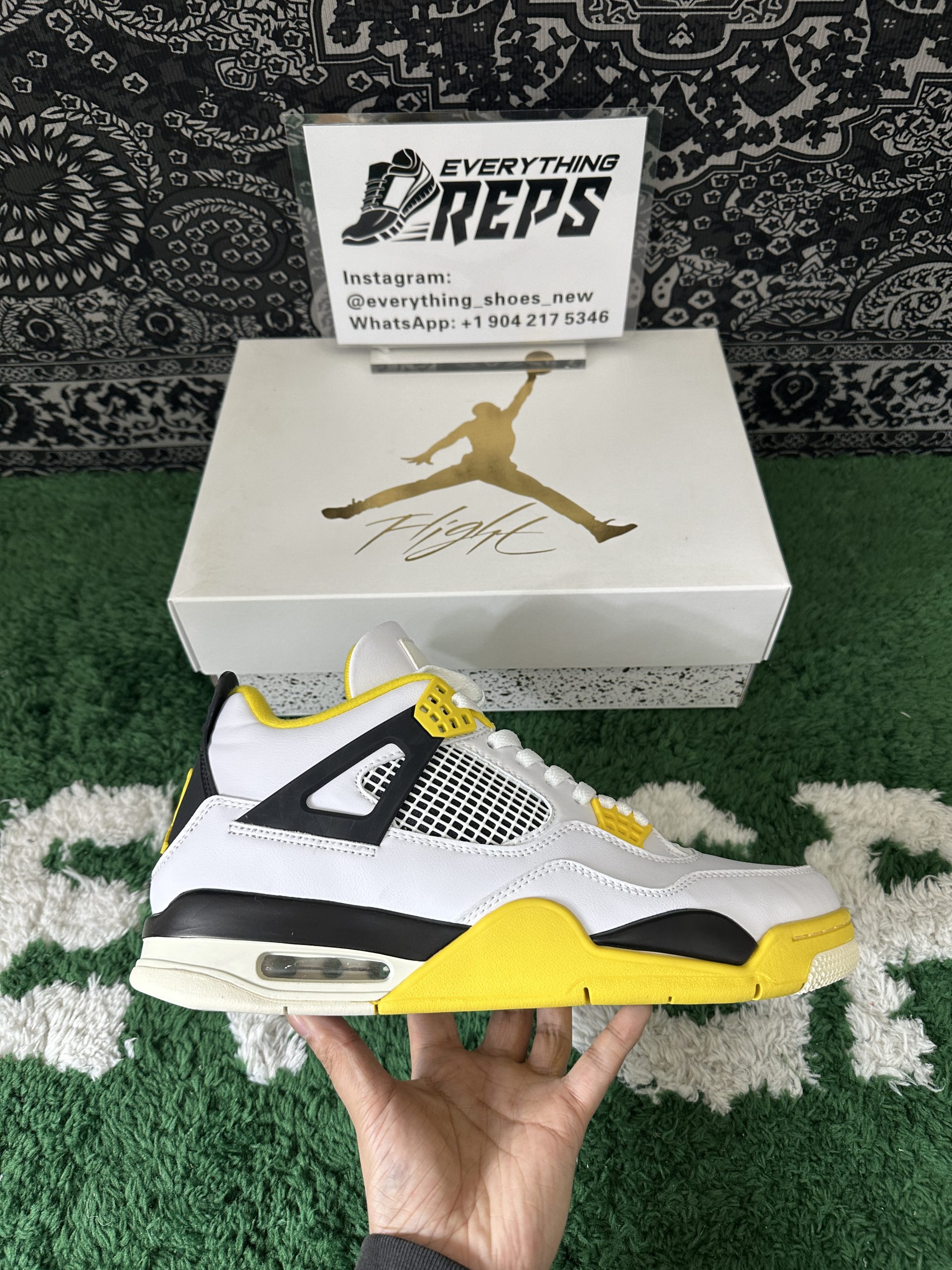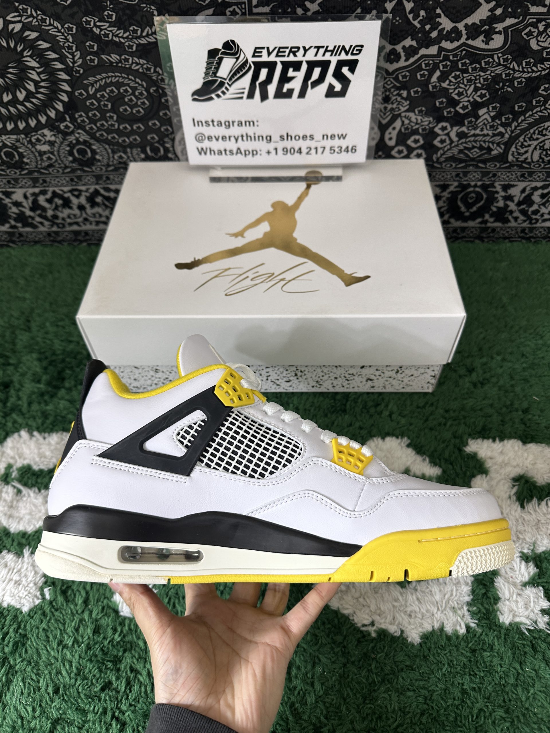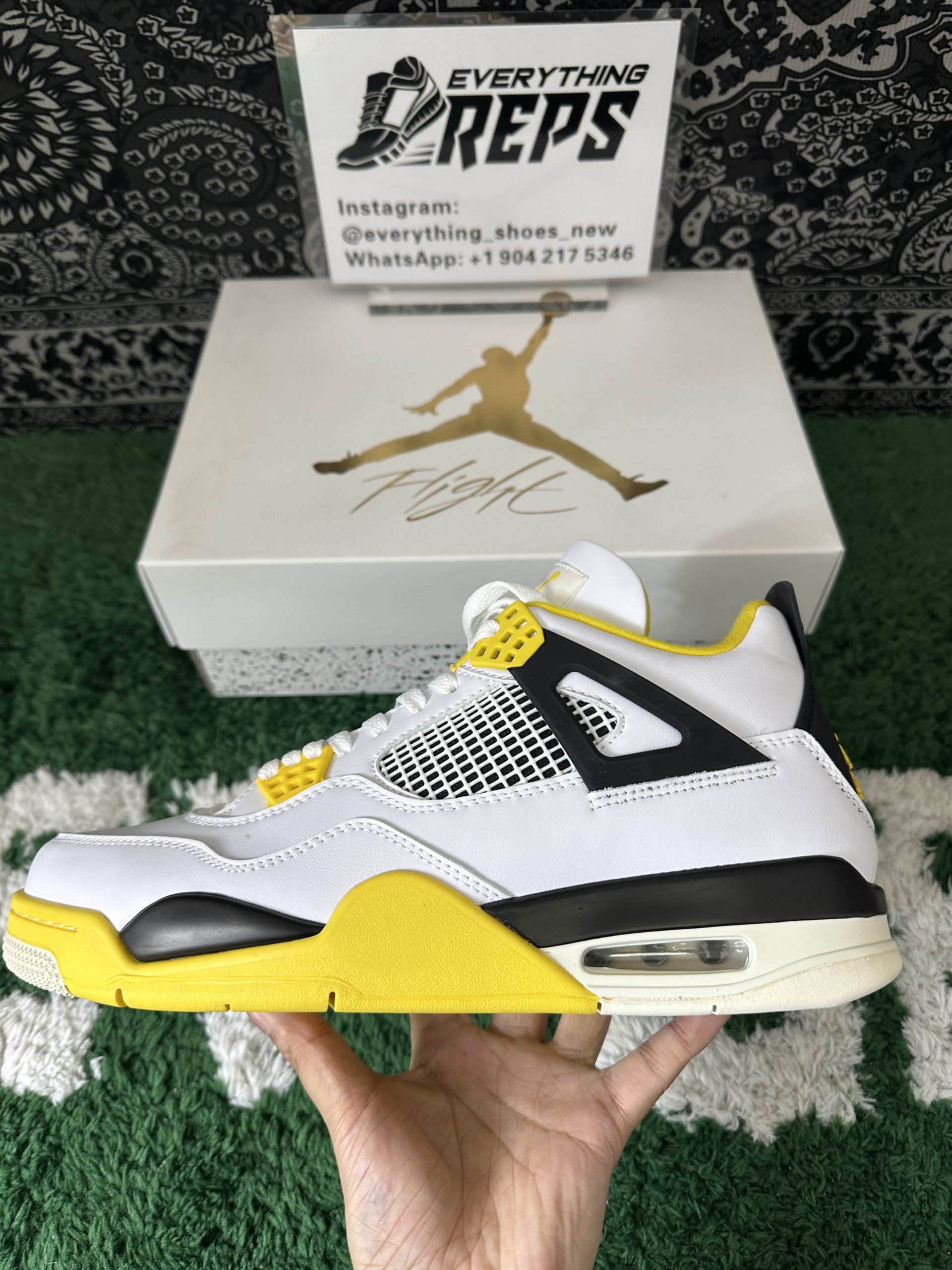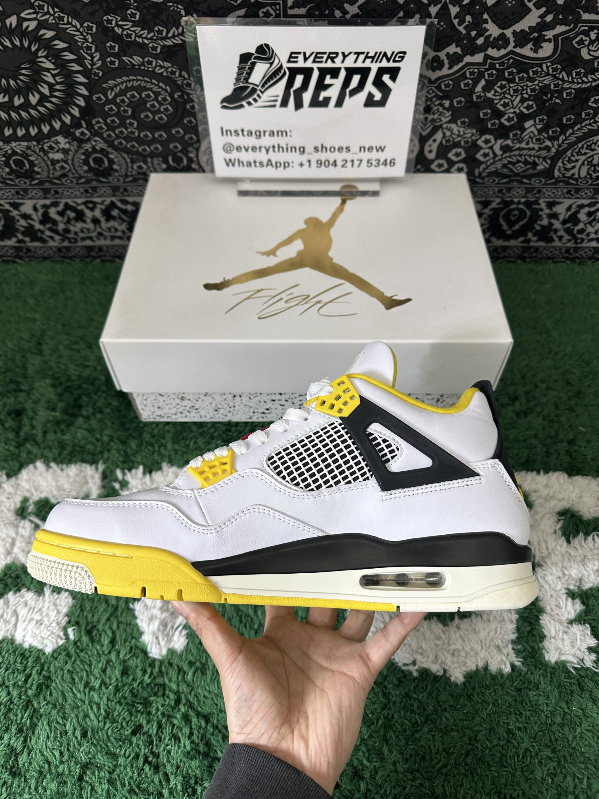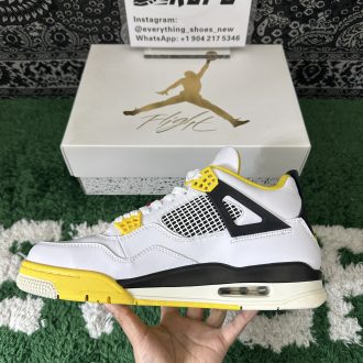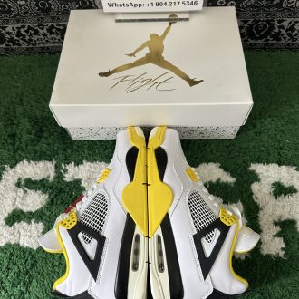 Staying true to the iconic Air Jordan 4 design, it features signature elements like mesh quarter panels, the supportive lace cage system, and the classic winged eyelets. The sulfur yellow touches on the lace crowns and midsole inject a bright pop of energy, while the neutral tones ensure effortless versatility across outfits.