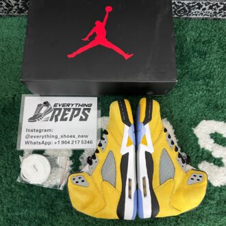 Own a piece of sneaker history with the replica Air Jordan 5 ‘Tokyo’ – 2025 edition. Featuring the legendary yellow suede upper, black midsole accents, and iconic Jumpman branding, this high-quality replica captures the bold energy of the original 2011 release with a fresh 2025 twist. Designed for sneakerheads, collectors, and streetwear fans, these replica Jordans offer standout style and comfort that turns heads on the street or in your collection.