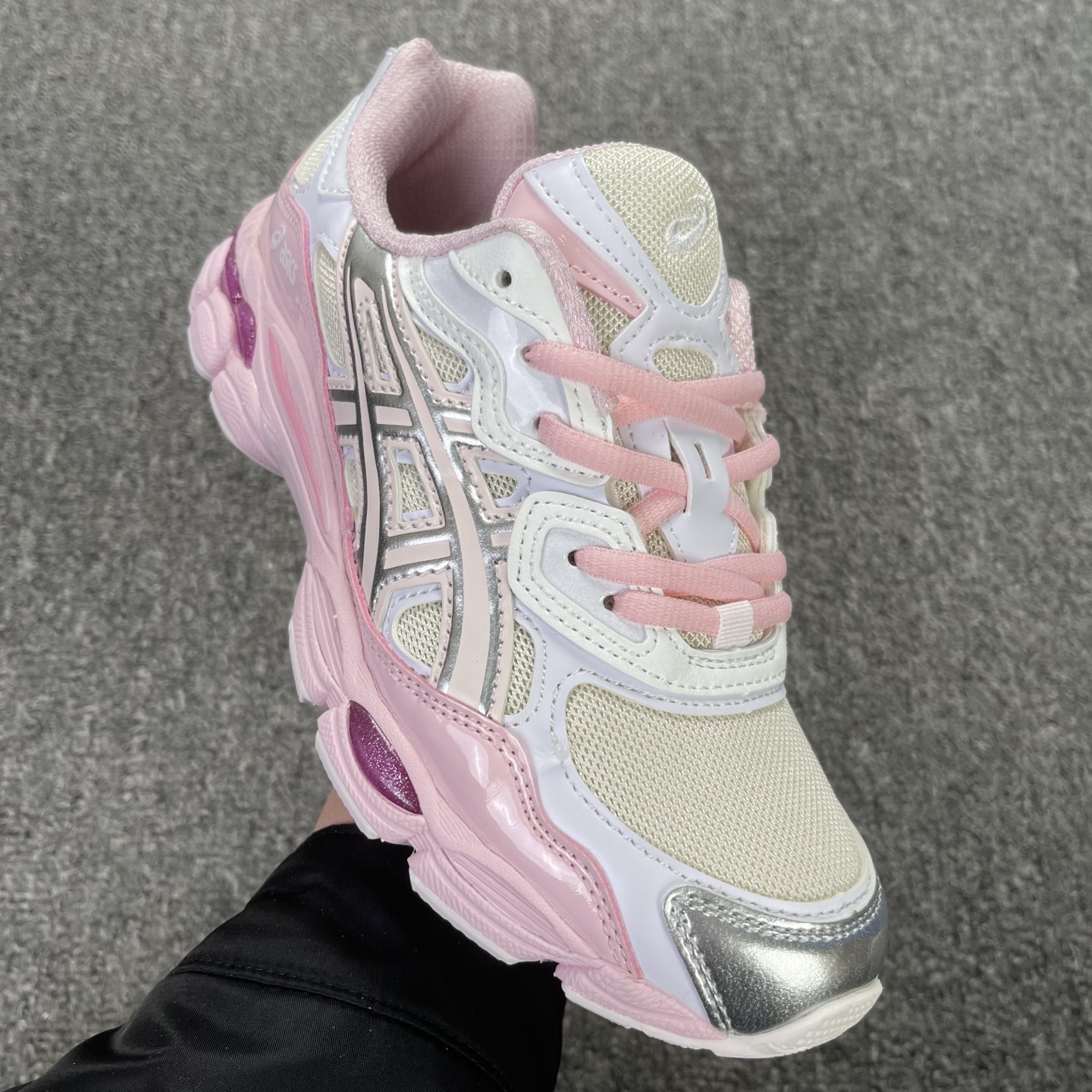 Discover the replica ASICS Gel-NYC Kicki Yang Zhang Pink Cream Pure Silver, a stylish fusion of fashion and function. Inspired by the iconic collaboration with artist Kicki Yang Zhang, this sneaker features a cream mesh upper with glossy pink patent leather overlays and metallic silver accents for a bold, modern look. Equipped with ASICS’ signature GEL™ technology, it offers exceptional cushioning and comfort for all-day wear. Perfect for sneaker enthusiasts seeking a vibrant, trend-setting addition to their collection. SKU: 1203A571-100.