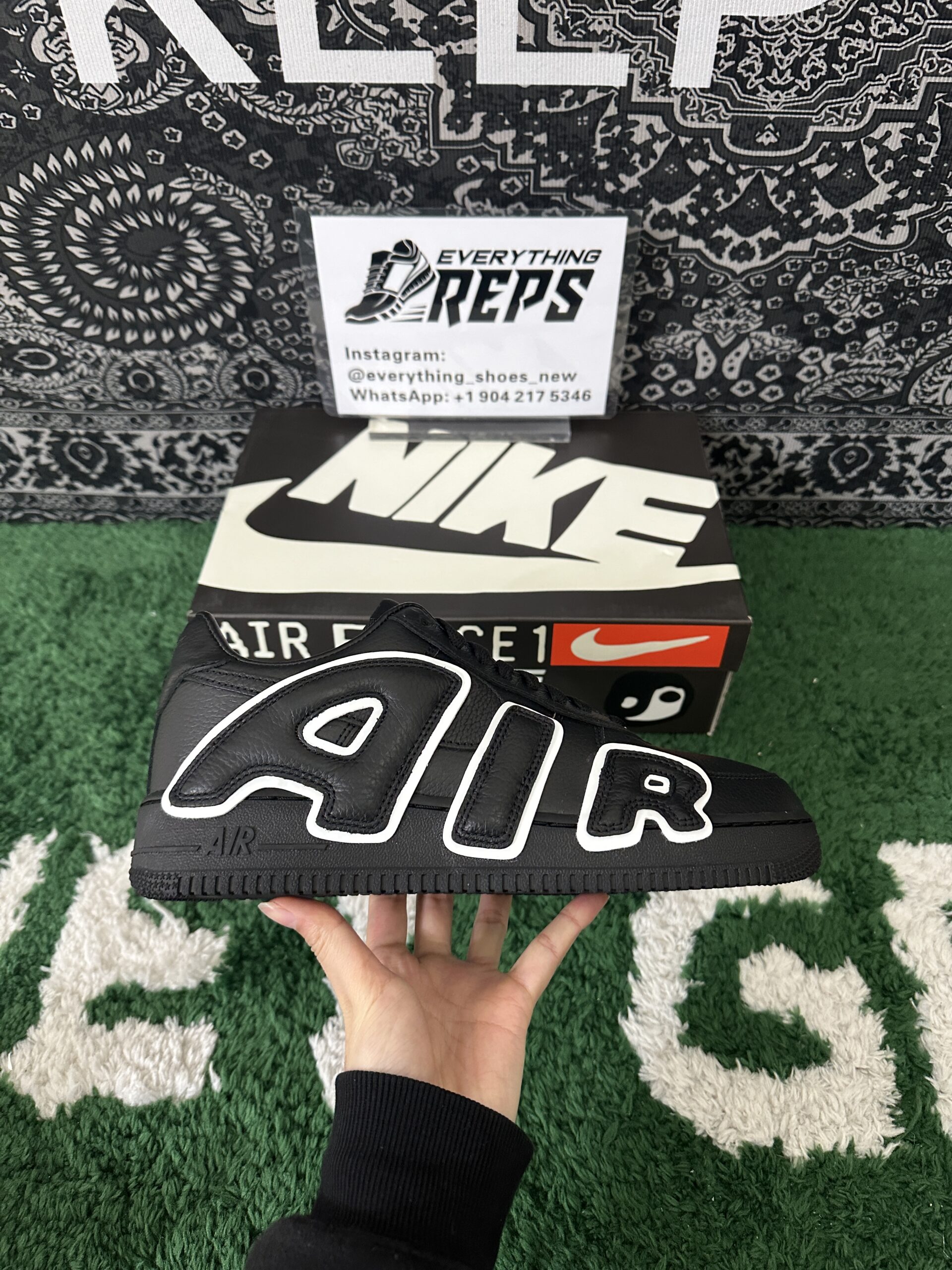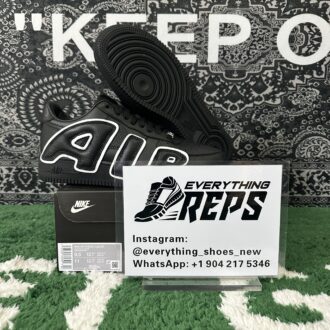Introducing the Replica UA Cactus Plant Flea Market x Air Force 1 Low Premium ‘Black’ – an essential pickup for sneaker enthusiasts and collectors. This high-quality replica mirrors the original’s bold and creative aesthetic, featuring a sleek black leather upper and the signature oversized “AIR” lettering on the lateral side, paying homage to the Air More Uptempo. Reflective accents add a modern, eye-catching twist, ensuring standout style day or night. Combining timeless Air Force 1 comfort with CPFM’s distinctive design vision, this pair delivers statement-making appeal—without the high price tag or wait.
