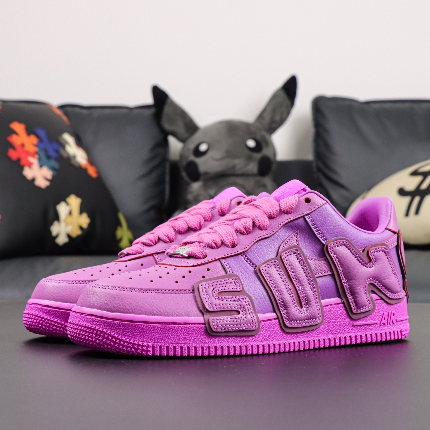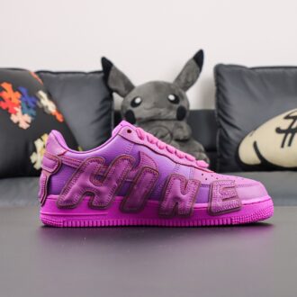 Introducing the Replica UA Cactus Plant Flea Market x Air Force 1 Low Premium ‘Fuschia’ – a standout piece for sneaker lovers and collectors alike. This replica stays true to the original’s bold aesthetic, featuring a vibrant fuschia leather upper and the signature oversized “AIR” lettering along the lateral side, inspired by the Air More Uptempo. Reflective accents add a dynamic edge, catching light with every step. Blending streetwear flair with classic AF1 comfort, this pair offers an eye-catching alternative for those who want iconic style without the premium cost or long wait.