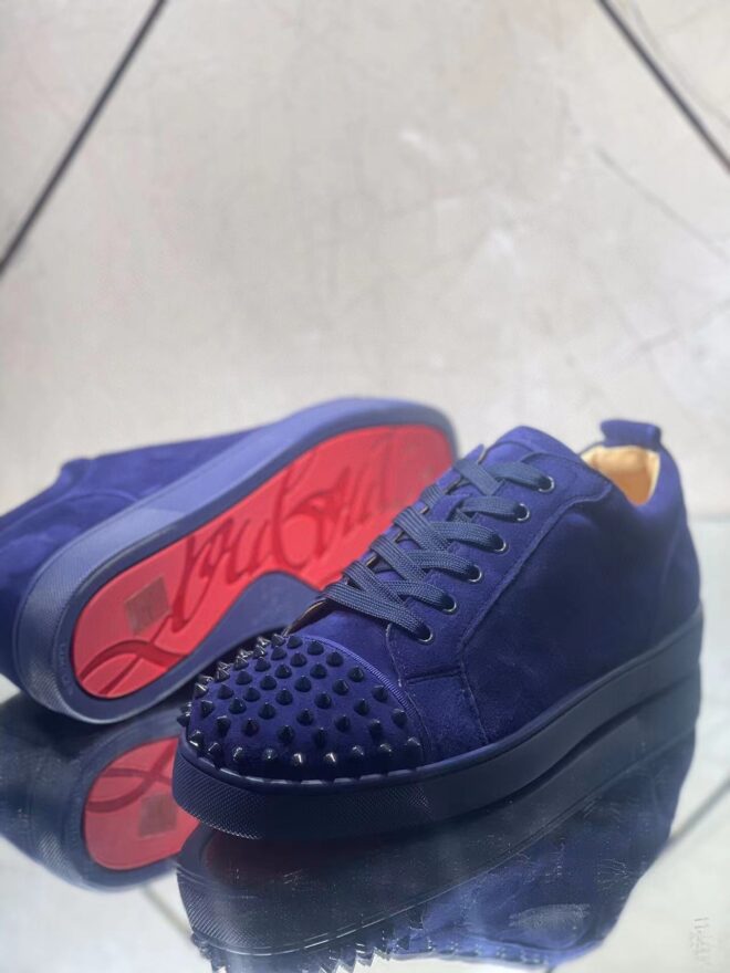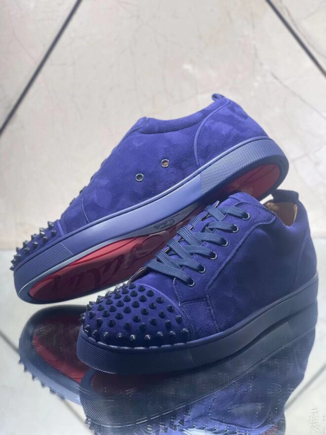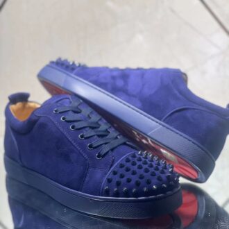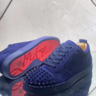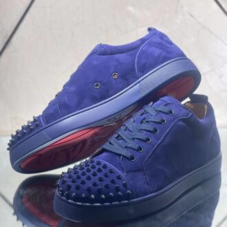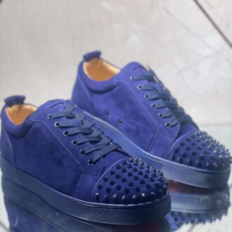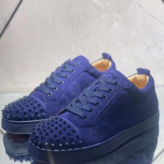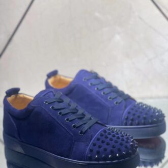 Christian Louboutin Louis Junior Spikes Flat Suede Sneakers Blue