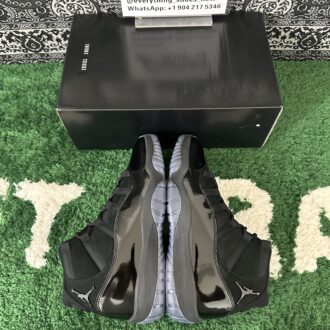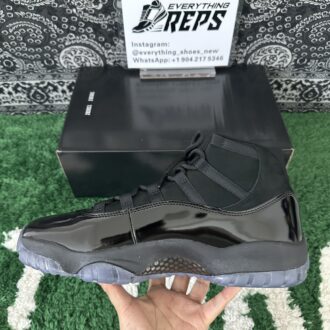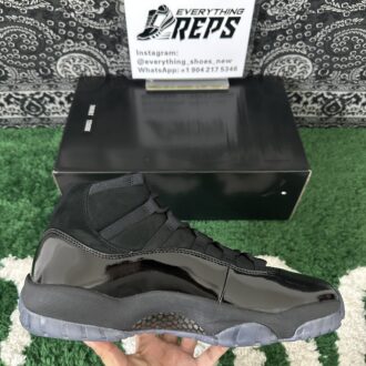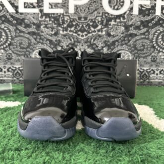 First revealed in 2011 as part of the Air Jordan Blackout Collection, the Air Jordan 11 Retro ‘Cap and Gown’ was released to the public in 2018. This formal-inspired sneaker, perfect for occasions like graduations, features laces modeled after graduation cords. The all-black design boasts a combination of patent leather and premium nubuck on the upper, sitting atop an icy blue outsole.
