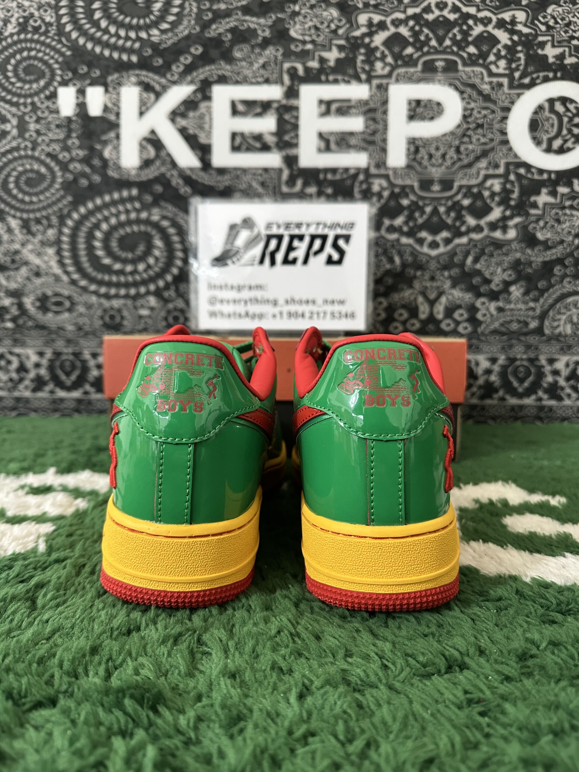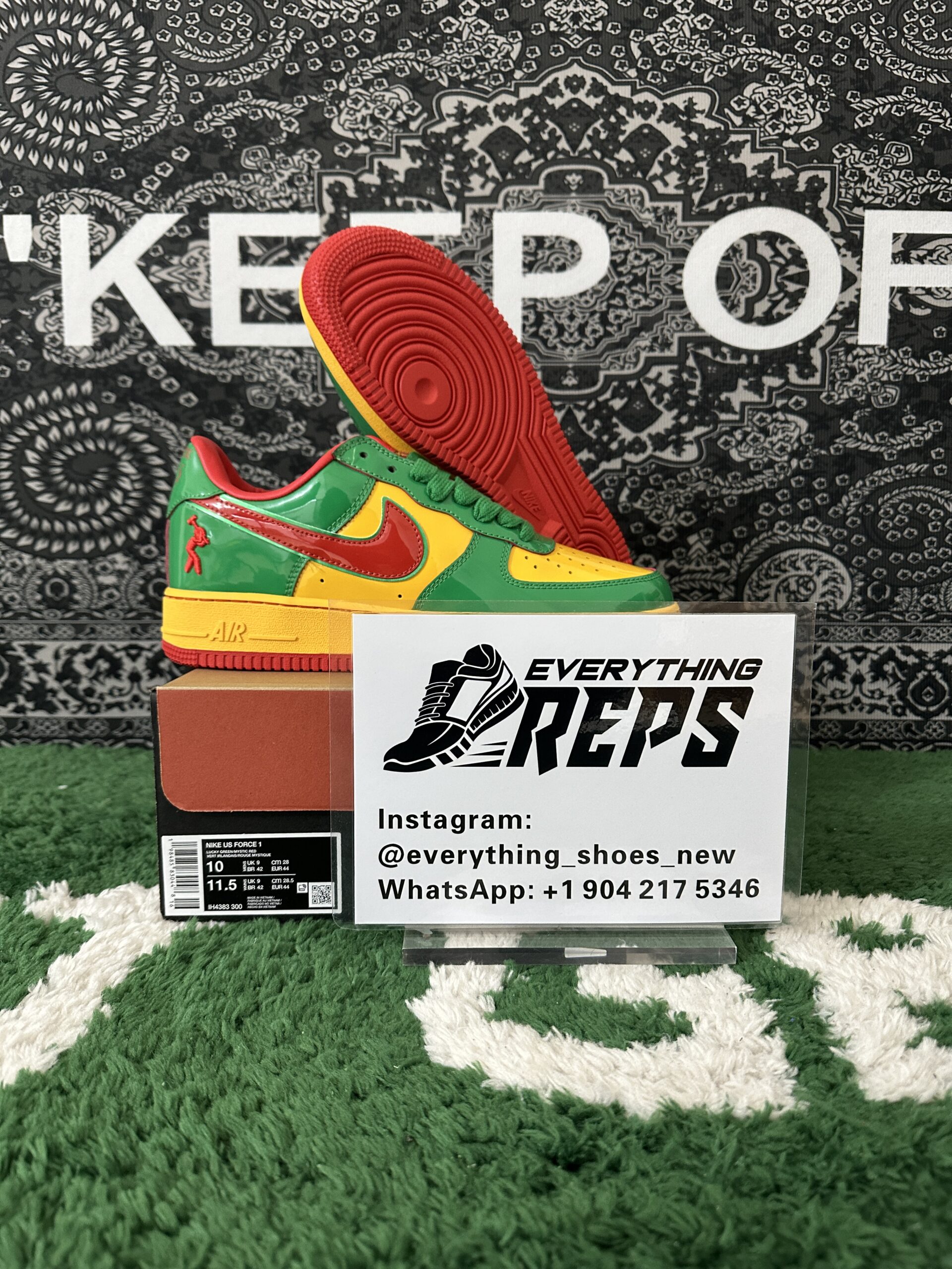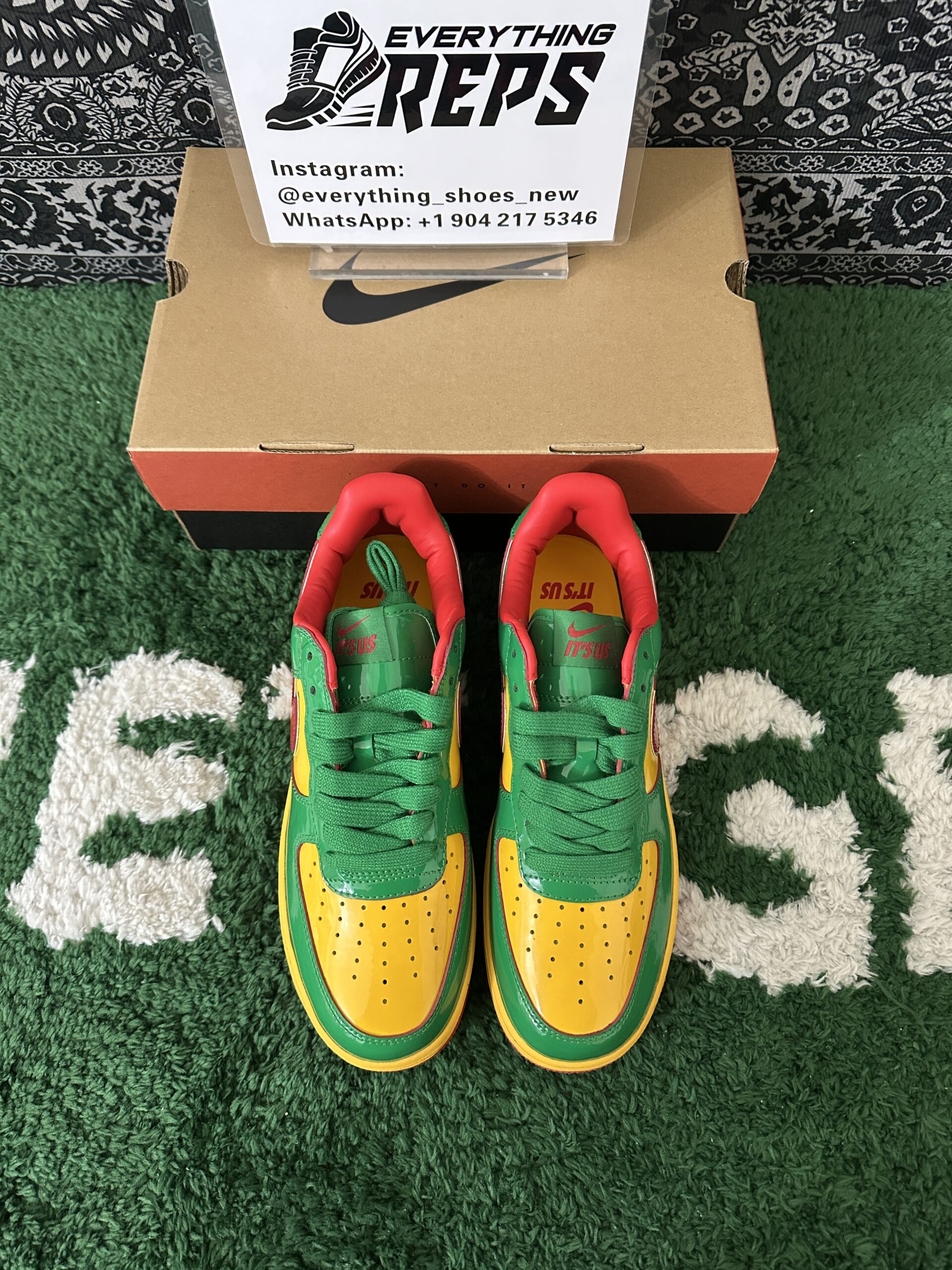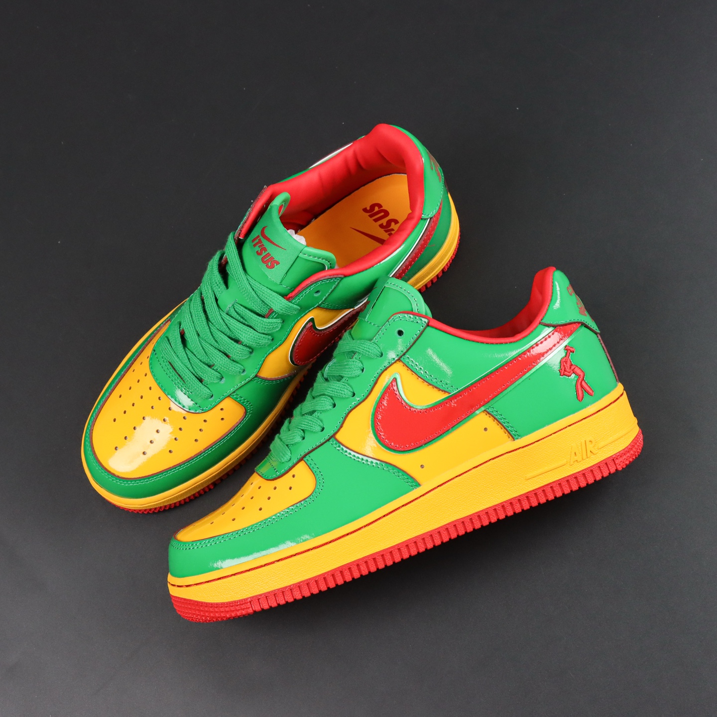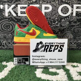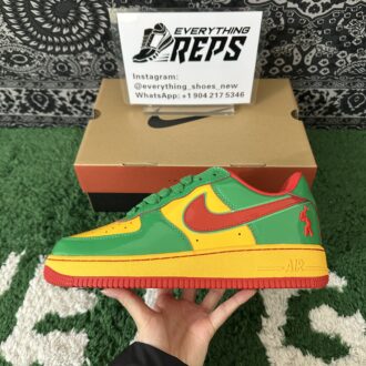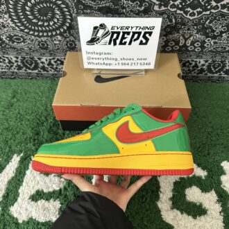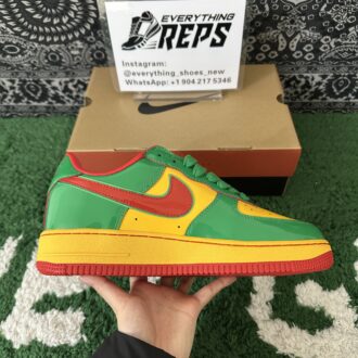 Elevate your style with the Nike Air Force 1 Low Lil Yachty Concrete Boys Lucky Green replica (IH4383-300). Featuring vibrant Lucky Green patent leather, University Gold accents, and bold Mystic Red Swoosh, this sneaker channels early 2000s streetwear vibes. The Concrete Boys logo on the heel and “IT’S US” branding on the tongue add exclusive flair. Perfect for sneakerheads seeking a standout, authentic-inspired look at an affordable price. Shop now for this iconic Lil Yachty collaboration!