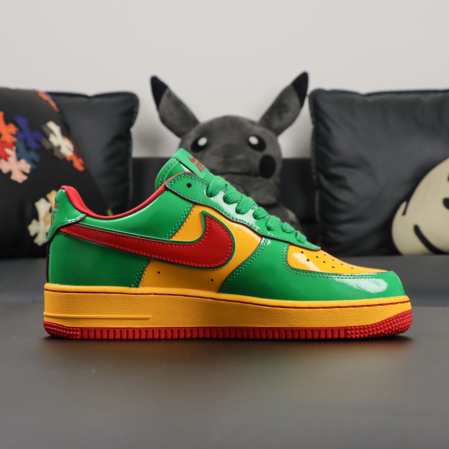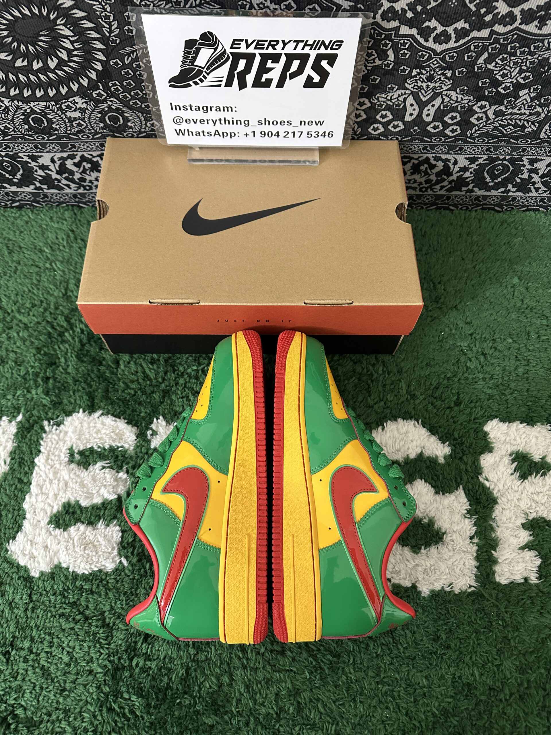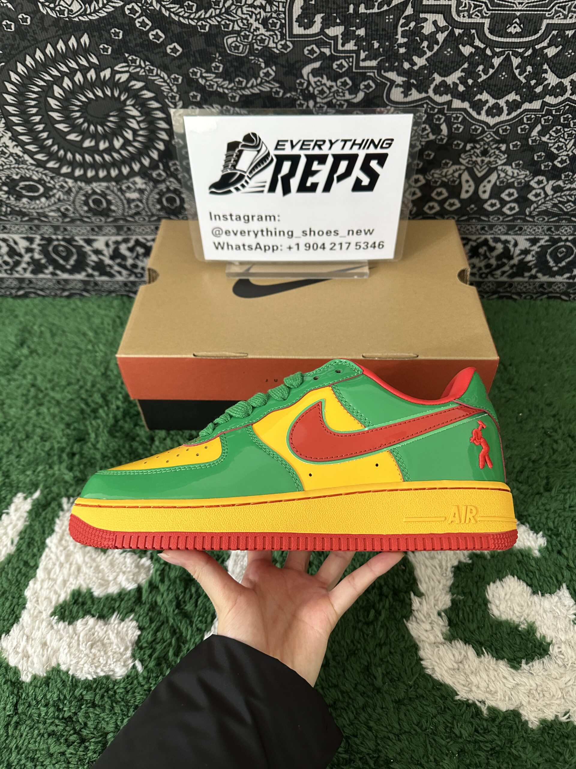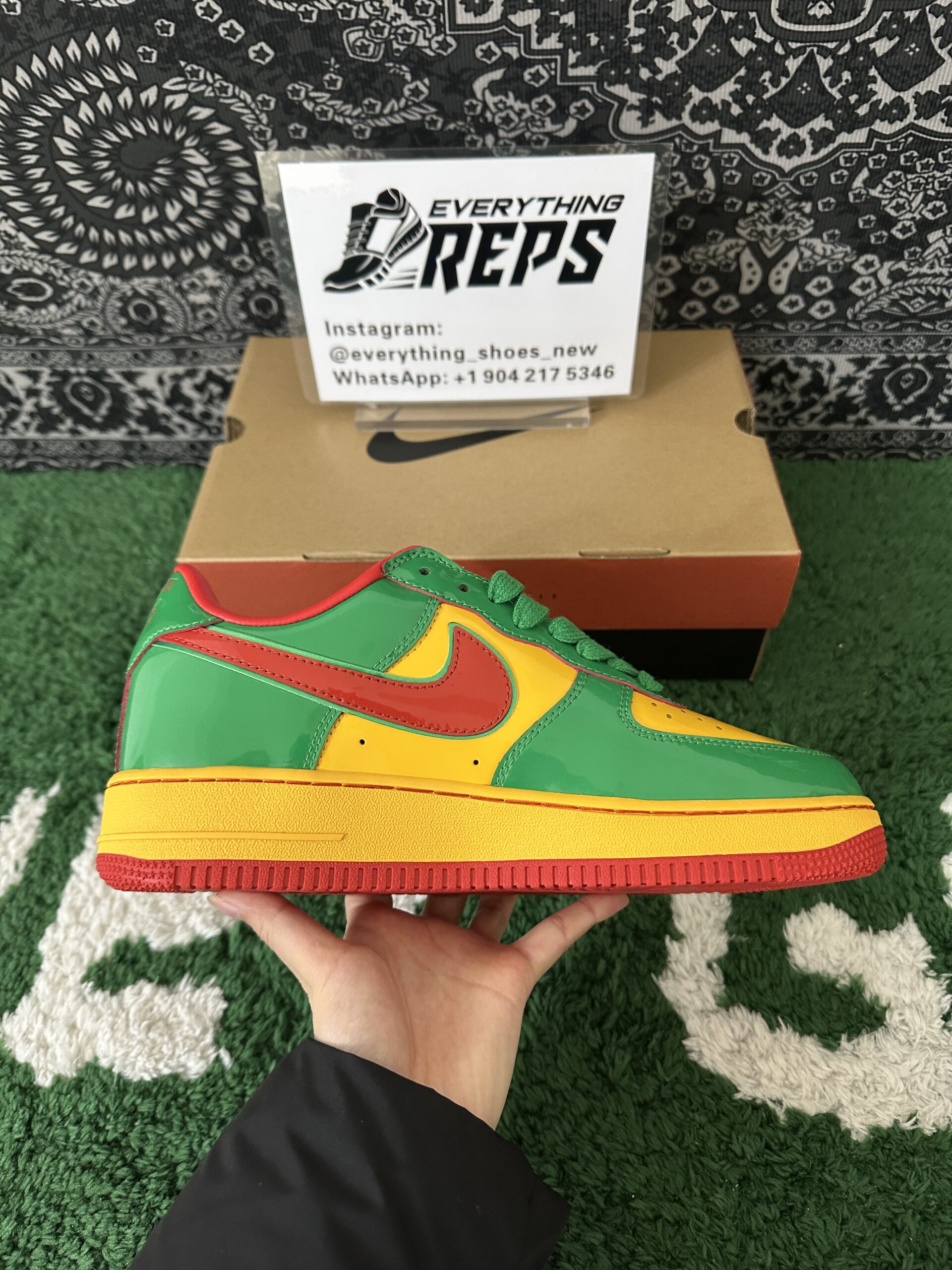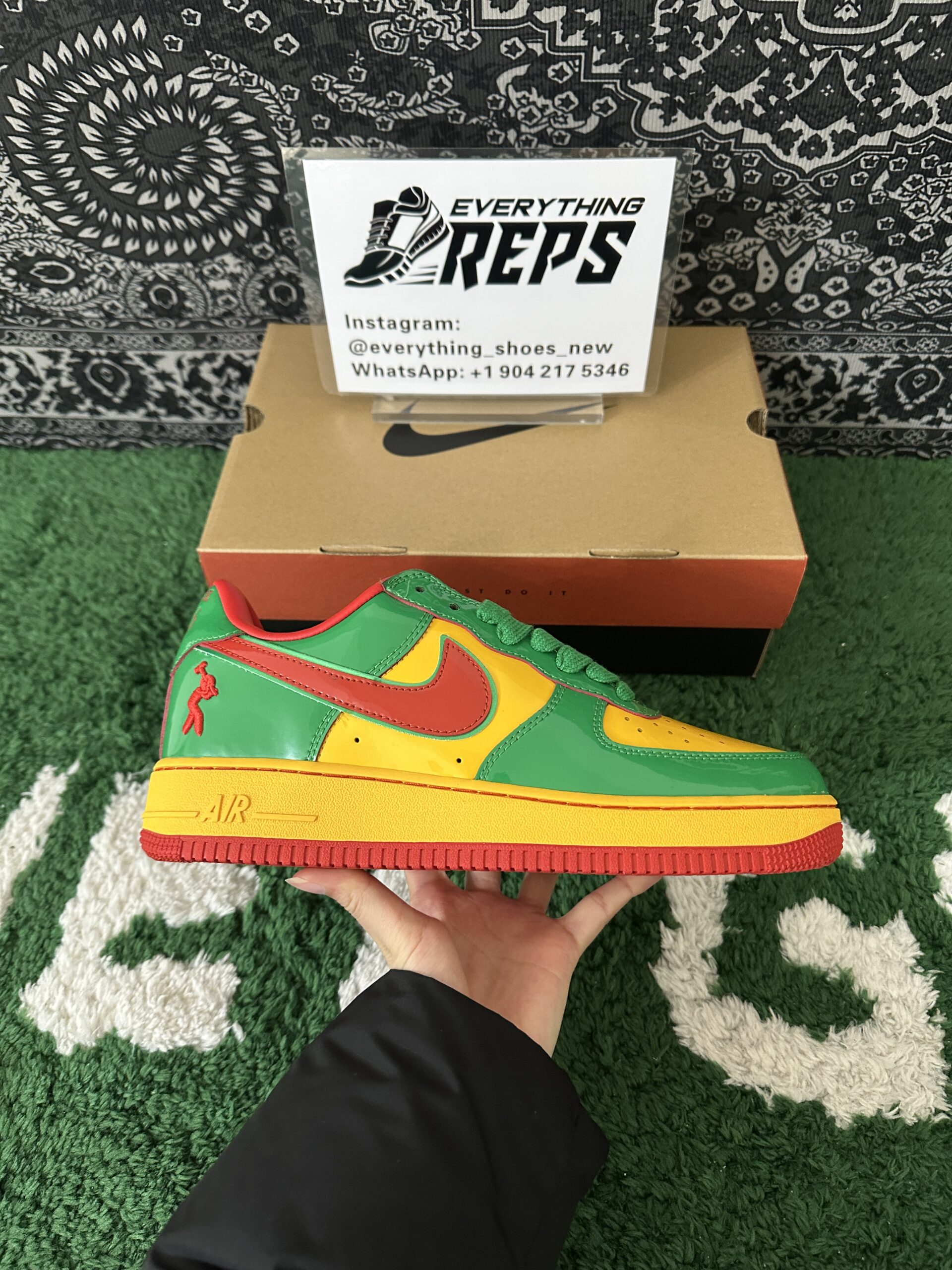 Elevate your style with the Nike Air Force 1 Low Lil Yachty Concrete Boys Lucky Green replica (IH4383-300). Featuring vibrant Lucky Green patent leather, University Gold accents, and bold Mystic Red Swoosh, this sneaker channels early 2000s streetwear vibes. The Concrete Boys logo on the heel and “IT’S US” branding on the tongue add exclusive flair. Perfect for sneakerheads seeking a standout, authentic-inspired look at an affordable price. Shop now for this iconic Lil Yachty collaboration!
