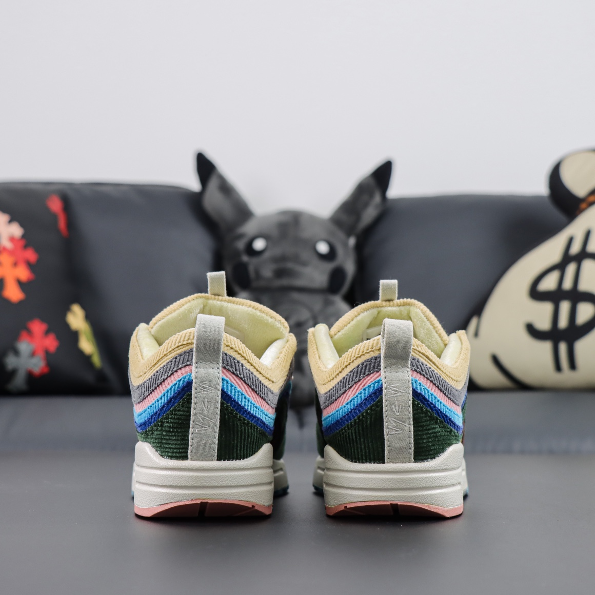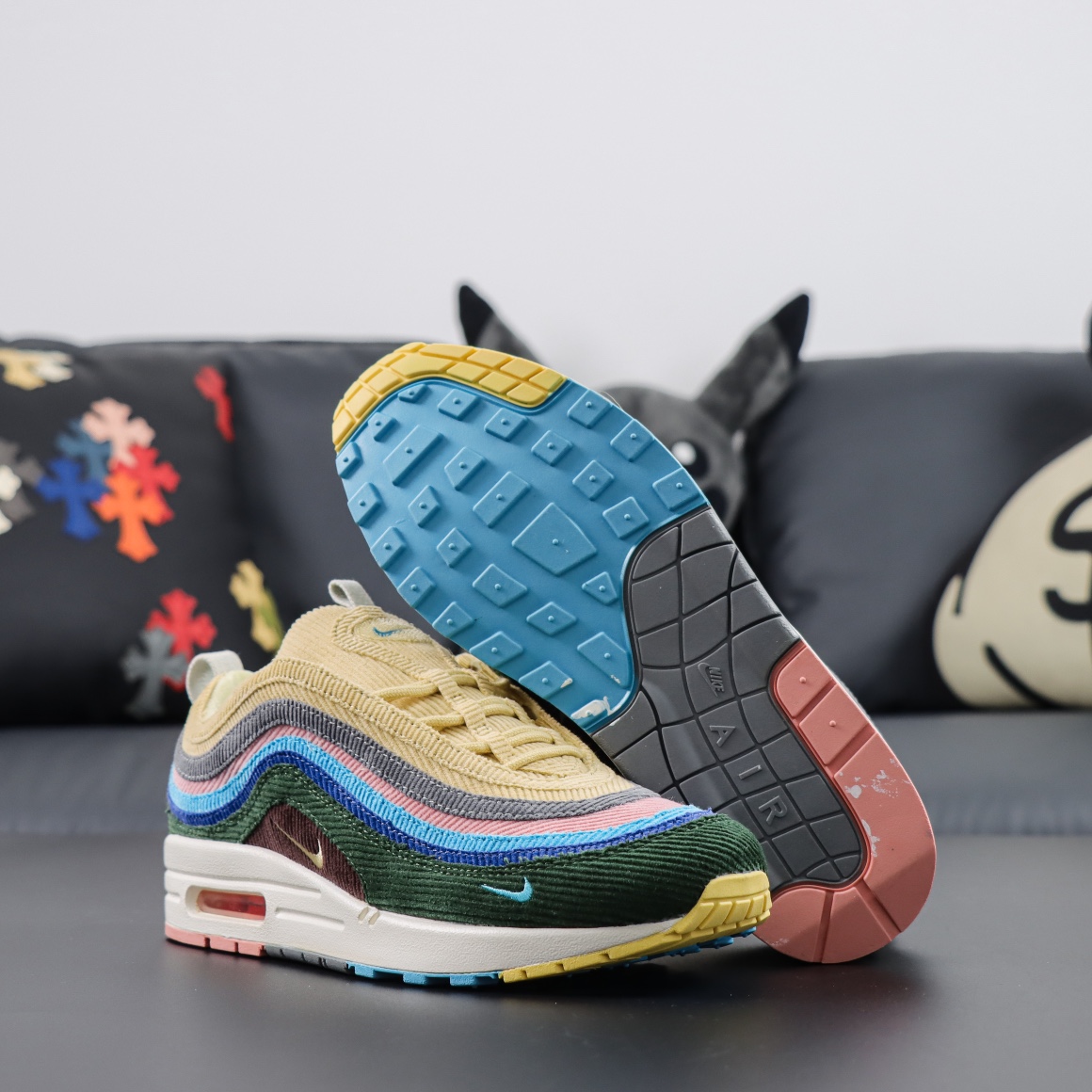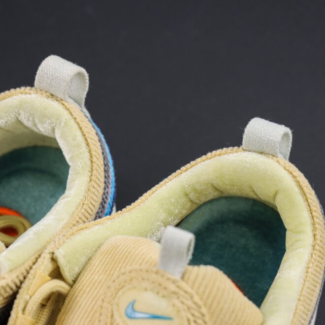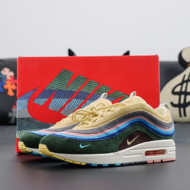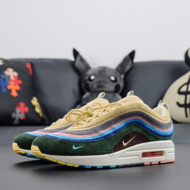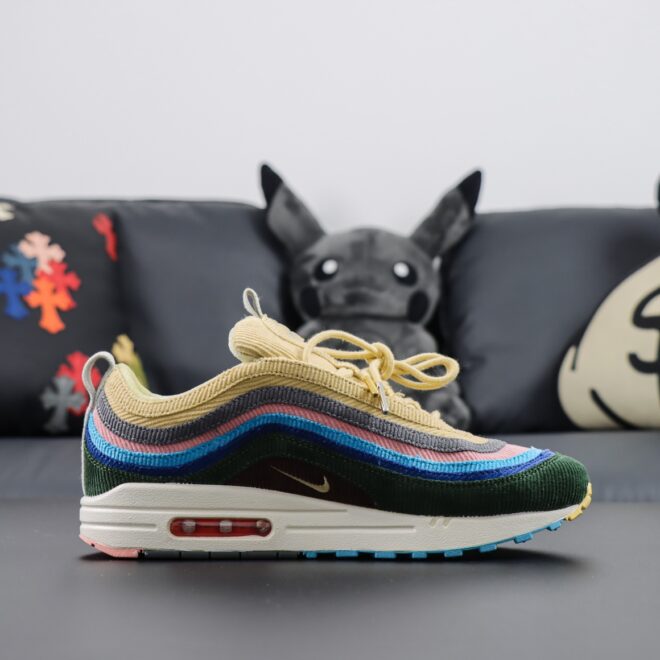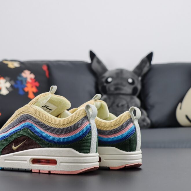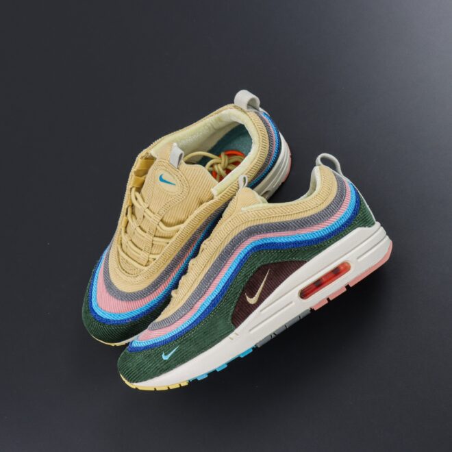 In 2017, Sean Wotherspoon, the owner of a consignment store, entered the Nike Vote Forward contest and crafted a unique design for the Nike Air Max 1/97 sneaker. This winning design was unveiled on Air Max Day in 2018, blending the distinctive wavy upper of the Air Max 97 with the classic midsole of the Air Max 1. Drawing inspiration from his love for vintage fashion, Wotherspoon incorporated elements such as corduroy panels reminiscent of ‘80s Nike caps and a retro smiley face motif on the insole. The shoe’s tongue features interchangeable Velcro patches, adding a playful touch to the overall aesthetic.
