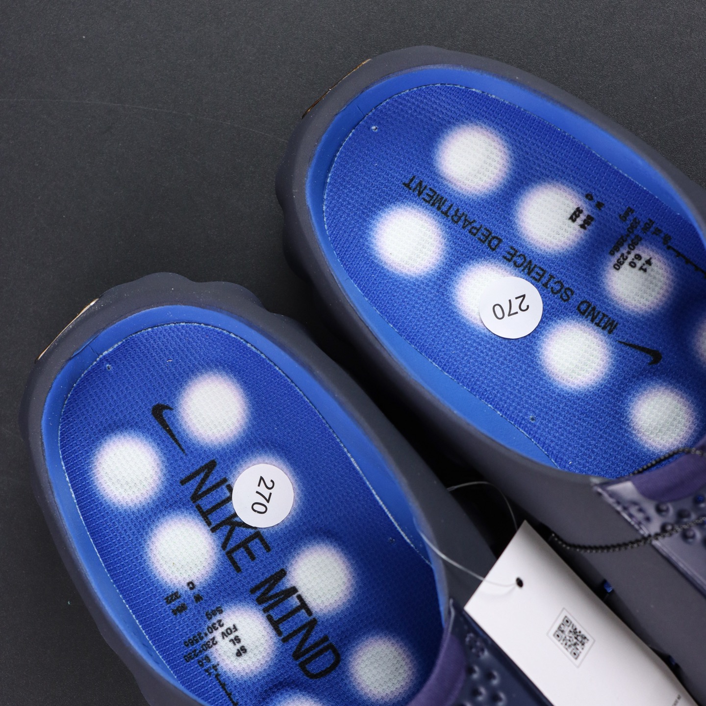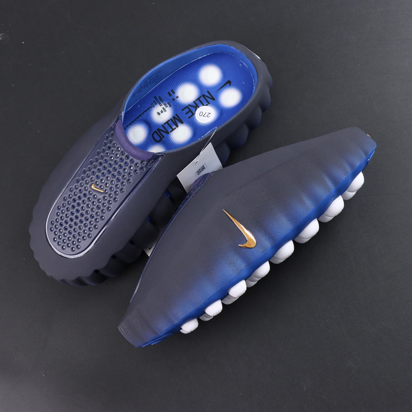 The Nike Mind 001 Slide Blackened Blue Game Royal reps bring a deep navy-to-royal blue colourway to one of Nike’s most interesting slide silhouettes — the chunky cupsole, the branded footbed, the clean minimal strap. The Blackened Blue base transitions into Game Royal accents, giving this the most colour-layered look in the Mind 001 Slide range. Our reps are from batches with correct blue tone accuracy — the blackened blue base is distinct from standard navy and any deviation is immediately visible. Size up one full size from your sneaker size — Mind 001 Slides run small. Free QC photos before shipping. Exchanges and returns available.