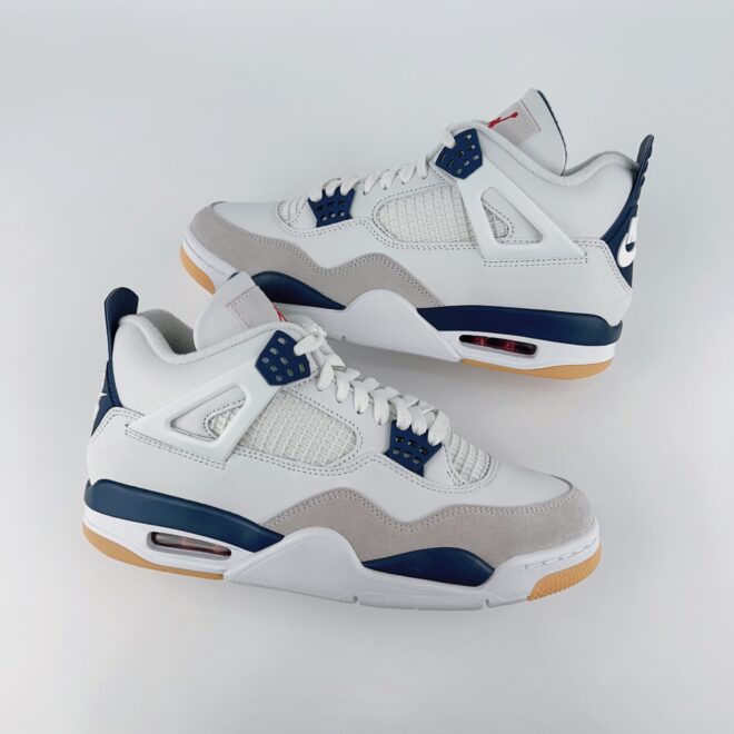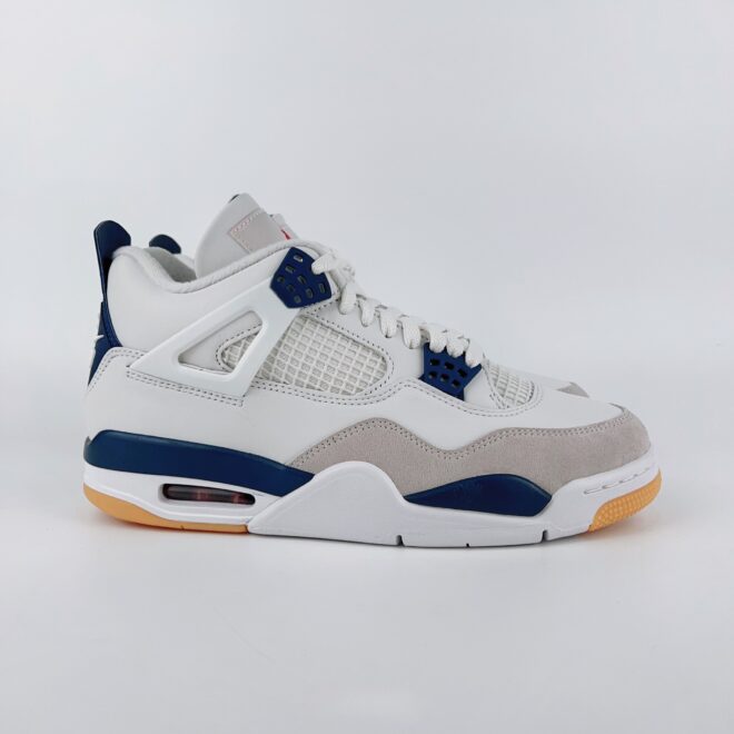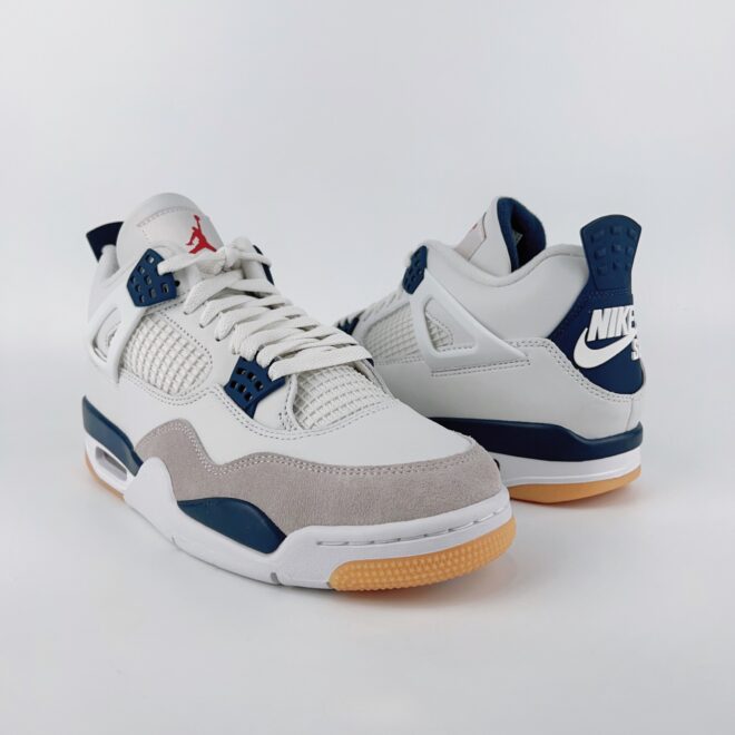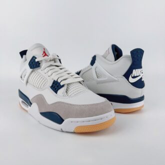 “The Nike SB x Air Jordan 4 ‘Navy’ blends iconic basketball heritage with skate-ready innovation. Featuring a sleek navy blue suede upper, this collab boasts a gum rubber outsole for enhanced grip, premium cushioning with Nike Air technology, and a re-engineered design tailored for durability and board feel. A bold fusion of style and performance, it’s a must-have for sneakerheads and skaters alike.”