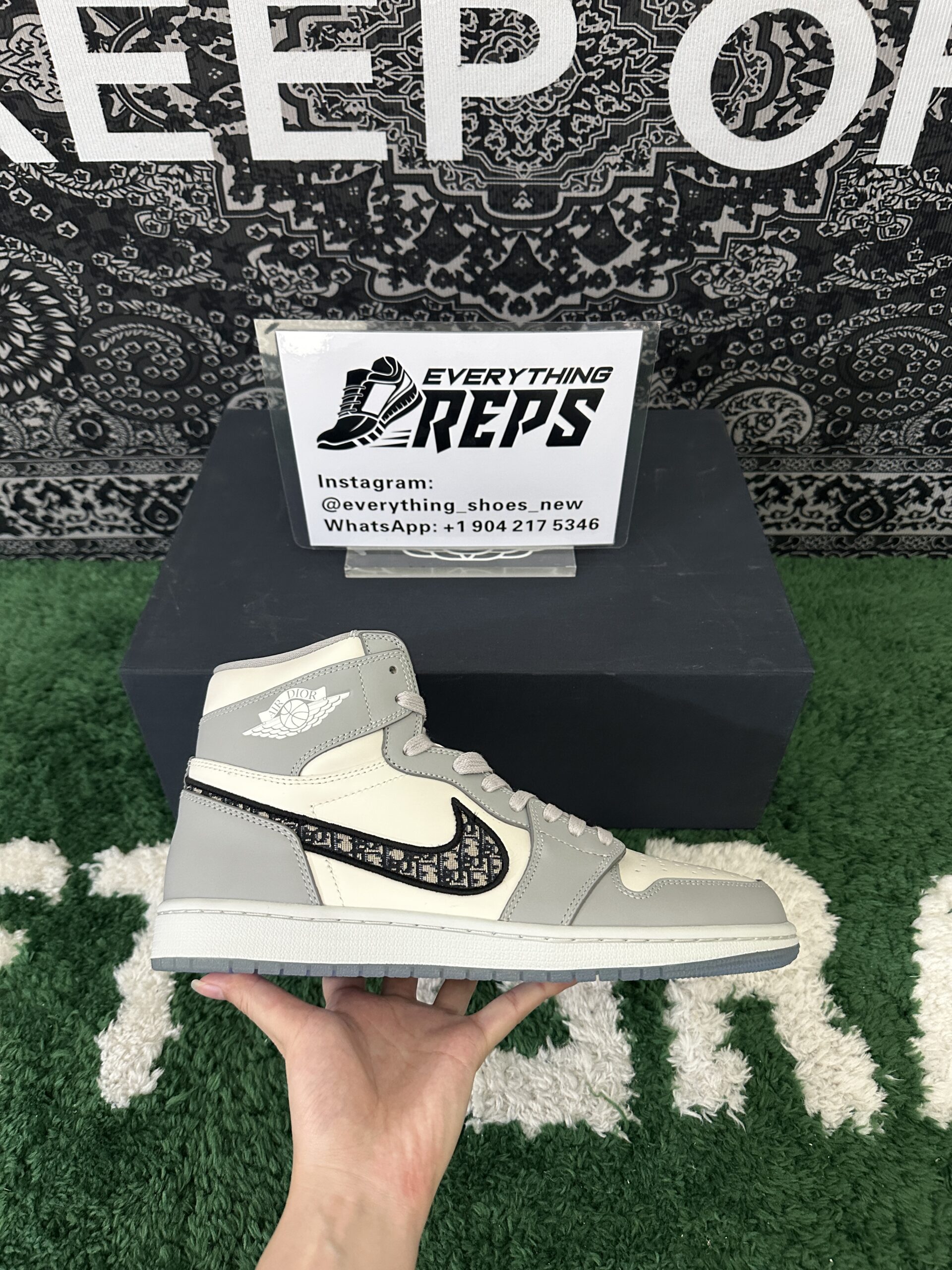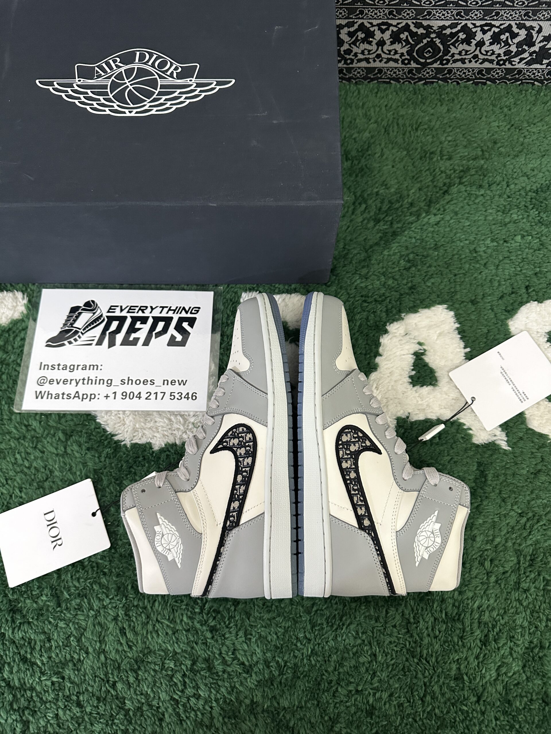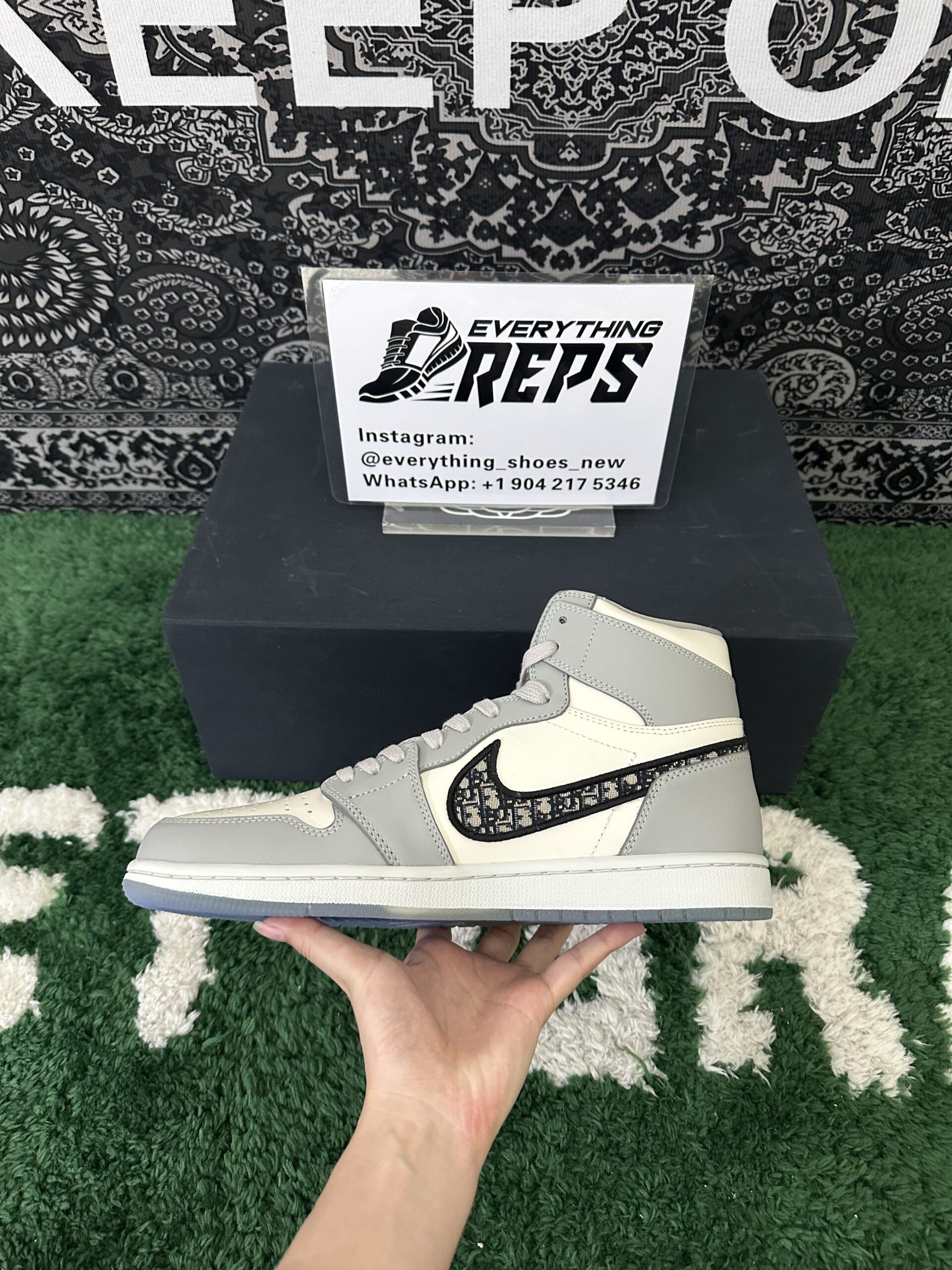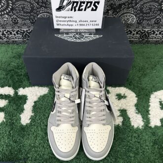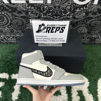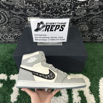 Handcrafted in Italy using premium materials, the Air Jordan 1 x Dior Retro High 32 features a luxurious white and grey leather upper adorned with the signature Dior monogram print Swoosh. The attention to detail is evident with co-branded icy translucent soles, a Dior-branded tongue and Wings logo, and a silver “Air Dior” hang tag, showcasing the exceptional craftsmanship synonymous with both brands.