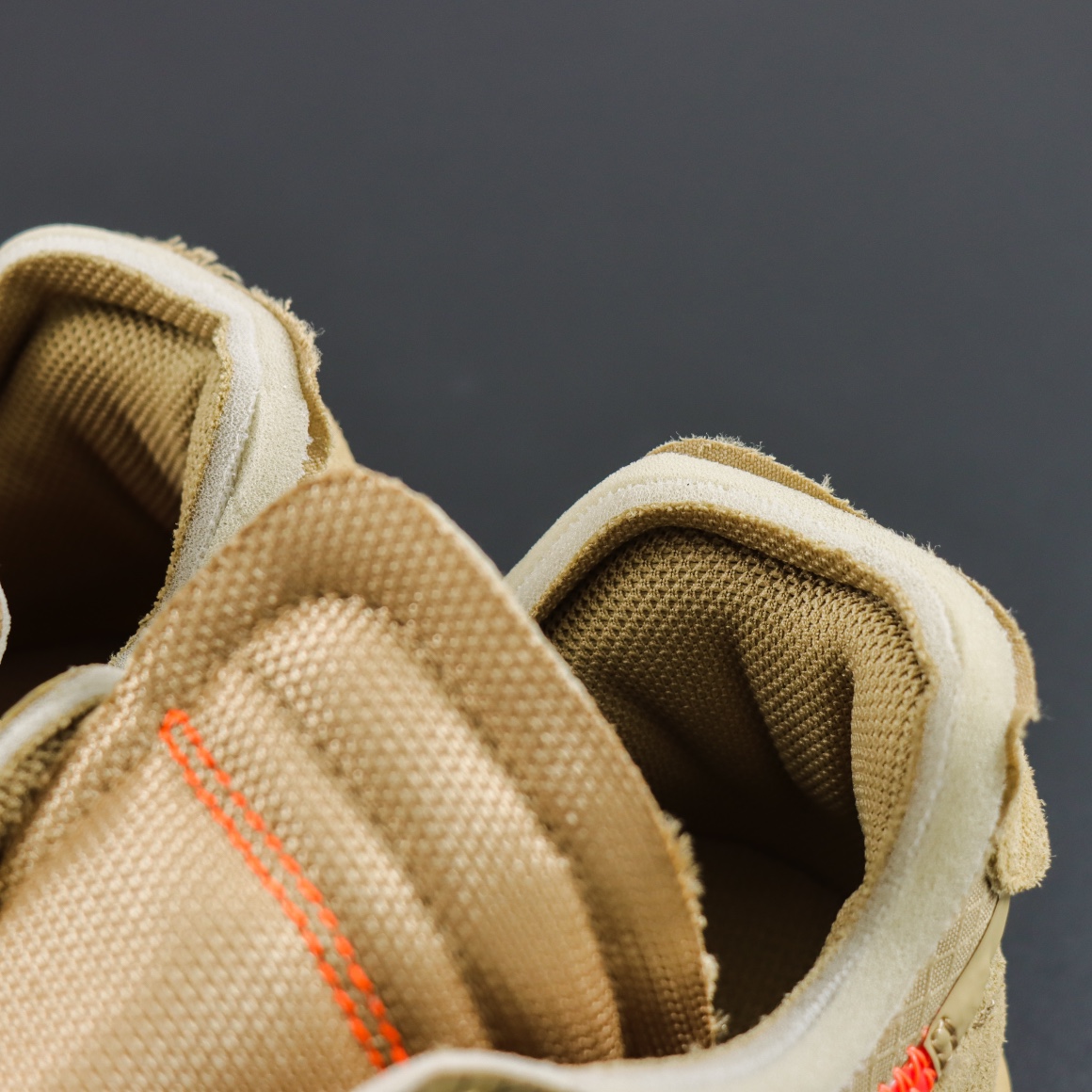 The Nike Air Max 90 OFF-WHITE Desert Ore brings another imaginative twist from Virgil Abloh to the classic silhouette. Unlike the bold black and white versions, this design sports a mixed-material upper in a warm tan hue. A vibrant Bright Mango stitched Swoosh stands out, complemented by Abloh’s signature details like the blue zip tie and printed text on the medial side.