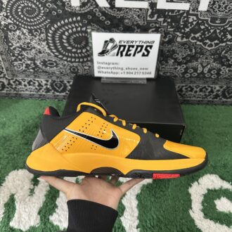 The Nike Kobe 5 Protro Bruce Lee 2020 revives a fan-favorite 2010 colorway, drawing inspiration from the martial artist whose philosophy deeply influenced Kobe Bryant’s approach to basketball. The striking yellow and black colorway, highlighted by red scratch marks on the lateral forefoot, pays homage to Bruce Lee’s legendary jumpsuit from Enter the Dragon. Designed for peak performance, the shoe features a lightweight upper enhanced with Nike’s Flywire technology, paired with a foam midsole that incorporates a large Zoom Air unit in the forefoot for responsive cushioning.