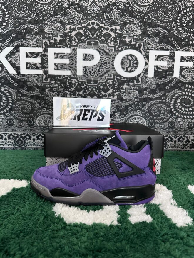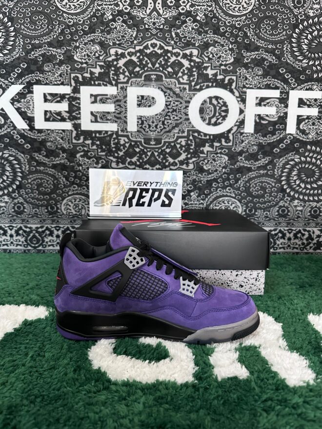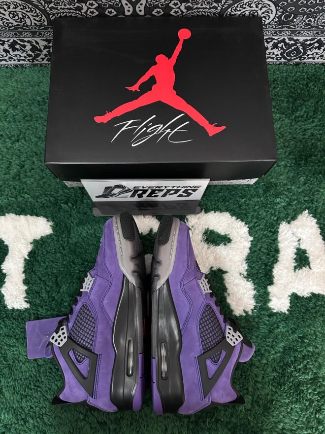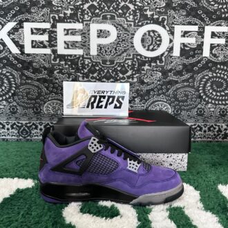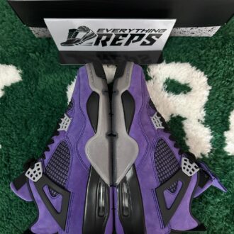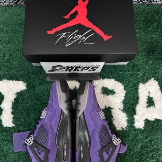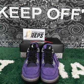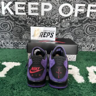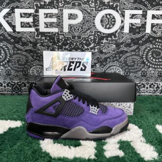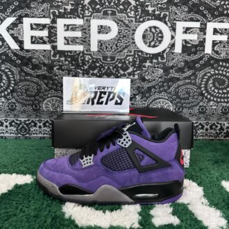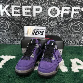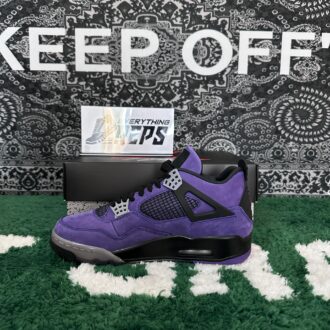 Unreleased to the public and available only as a friends-and-family exclusive in July 2019, the Travis Scott x Nike Air Jordan 4 Retro ‘Purple Suede – White Midsole’ was frequently worn by the Houston rapper at various events. This unique sneaker features a purple suede upper, black grid mesh, matte lace wings, and semi-transparent eyestays. Scott’s name is hidden under the left tongue, while a red Cactus Jack logo adorns the right heel. The design is completed with Visible Air technology and a translucent rubber outsole.