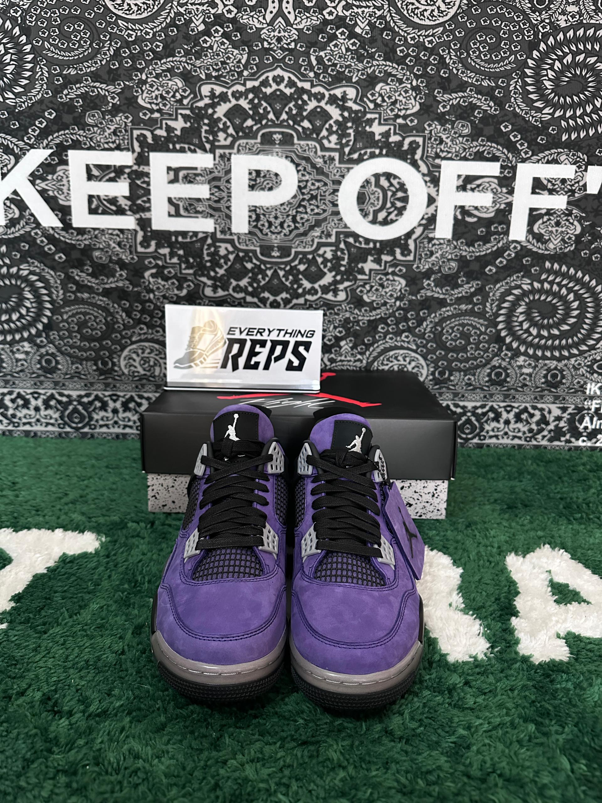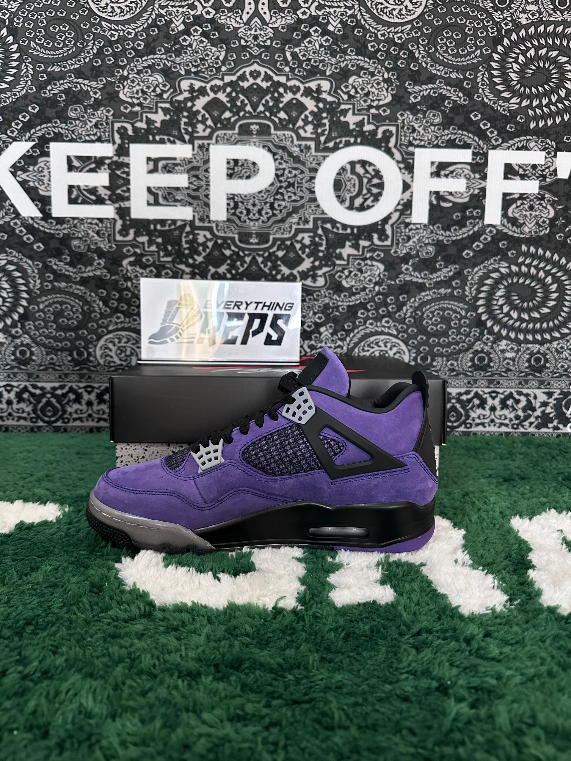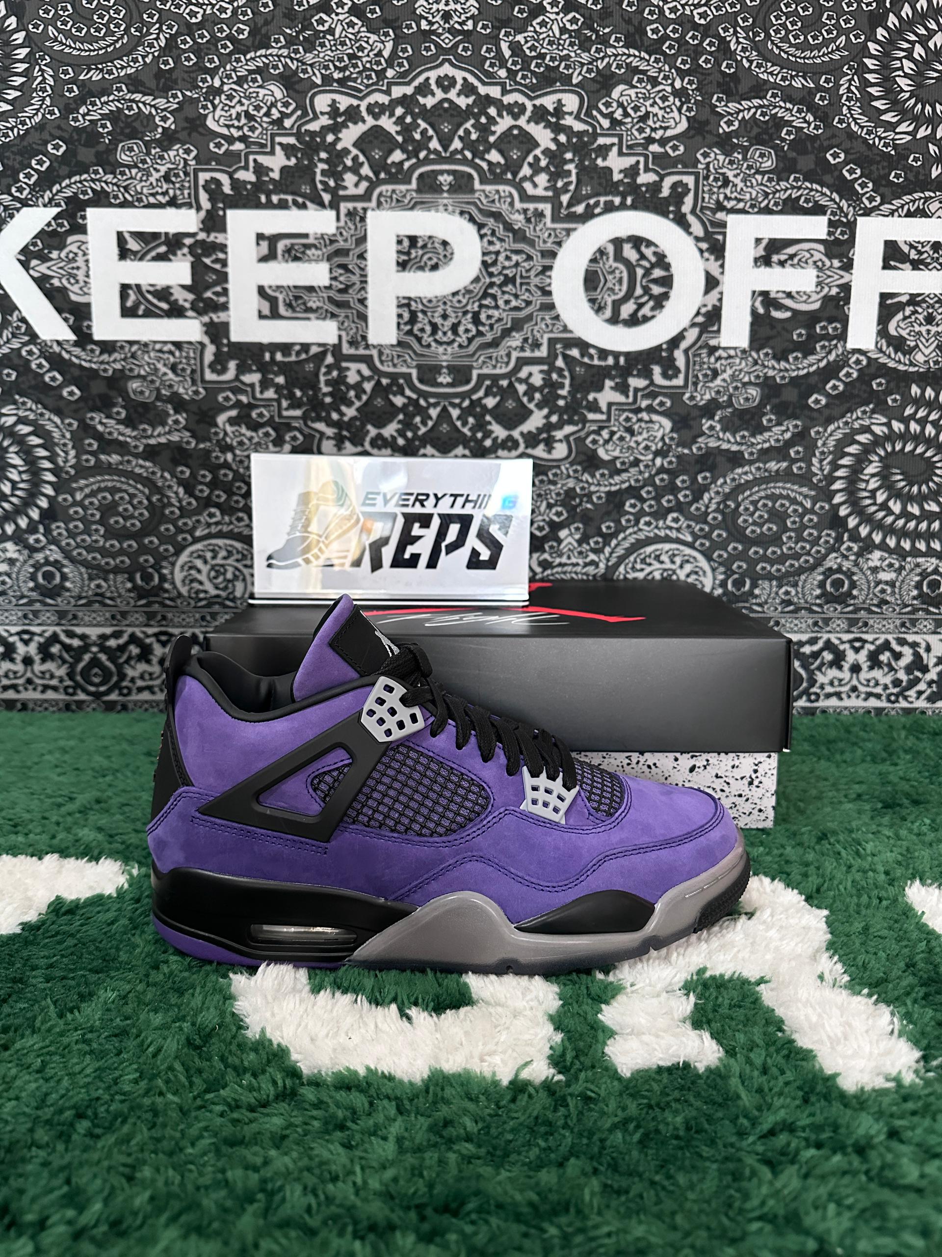 Unreleased to the public and available only as a friends-and-family exclusive in July 2019, the Travis Scott x Nike Air Jordan 4 Retro ‘Purple Suede – White Midsole’ was frequently worn by the Houston rapper at various events. This unique sneaker features a purple suede upper, black grid mesh, matte lace wings, and semi-transparent eyestays. Scott’s name is hidden under the left tongue, while a red Cactus Jack logo adorns the right heel. The design is completed with Visible Air technology and a translucent rubber outsole.