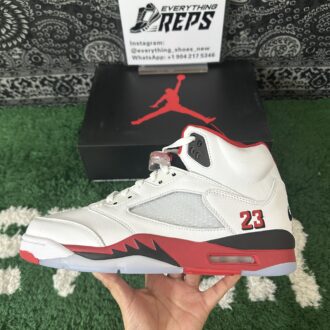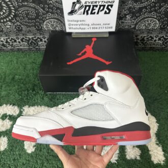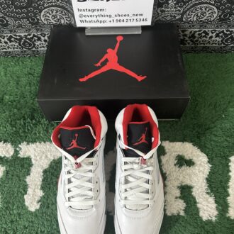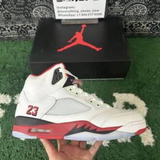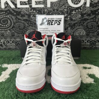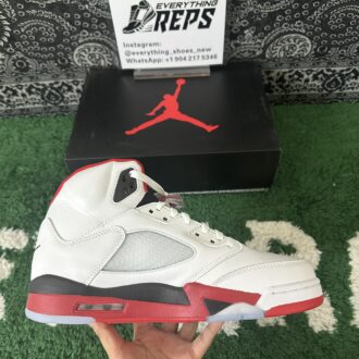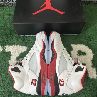 Ignite your sneaker game with the Air Jordan 5 “Fire Red Black Tongue.” Featuring premium white leather, bold Fire Red accents, and the iconic black reflective tongue, this classic silhouette blends heritage style with modern edge. A translucent icy outsole and visible Air cushioning ensure comfort and standout appeal. Perfect for collectors and streetwear enthusiasts alike, the “Fire Red Black Tongue” elevates any rotation with legendary Jordan Brand flair.